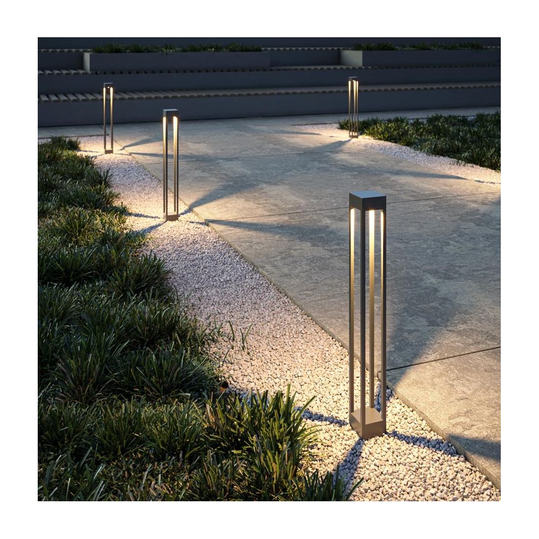 Questa soluzione di illuminazione esterna unisce estetica e funzionalità aggiungendo un tocco moderno a qualsiasi ambiente outdoor. Grazie alla sua robusta costruzione e all’illuminazione LED a basso consumo, offre una scelta sostenibile e duratura per valorizzare i vostri spazi esterni in modo elegante.