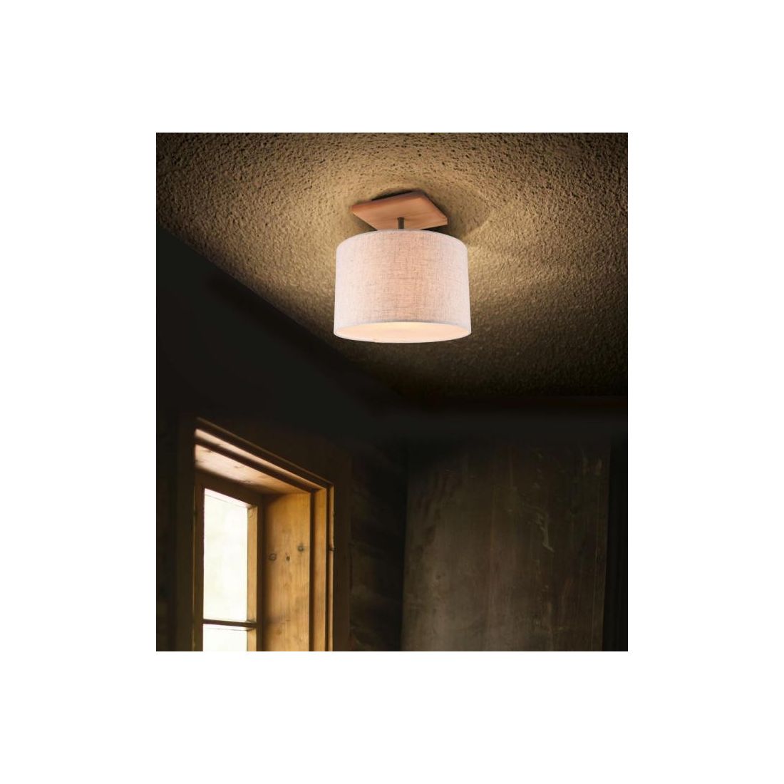 ELMAU SOSPENSIONE MODERNA 4 LUCI IN LEGNO E METALLO CON PARALUMI IN TESSUTO JUTA...