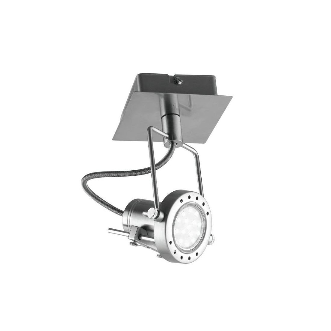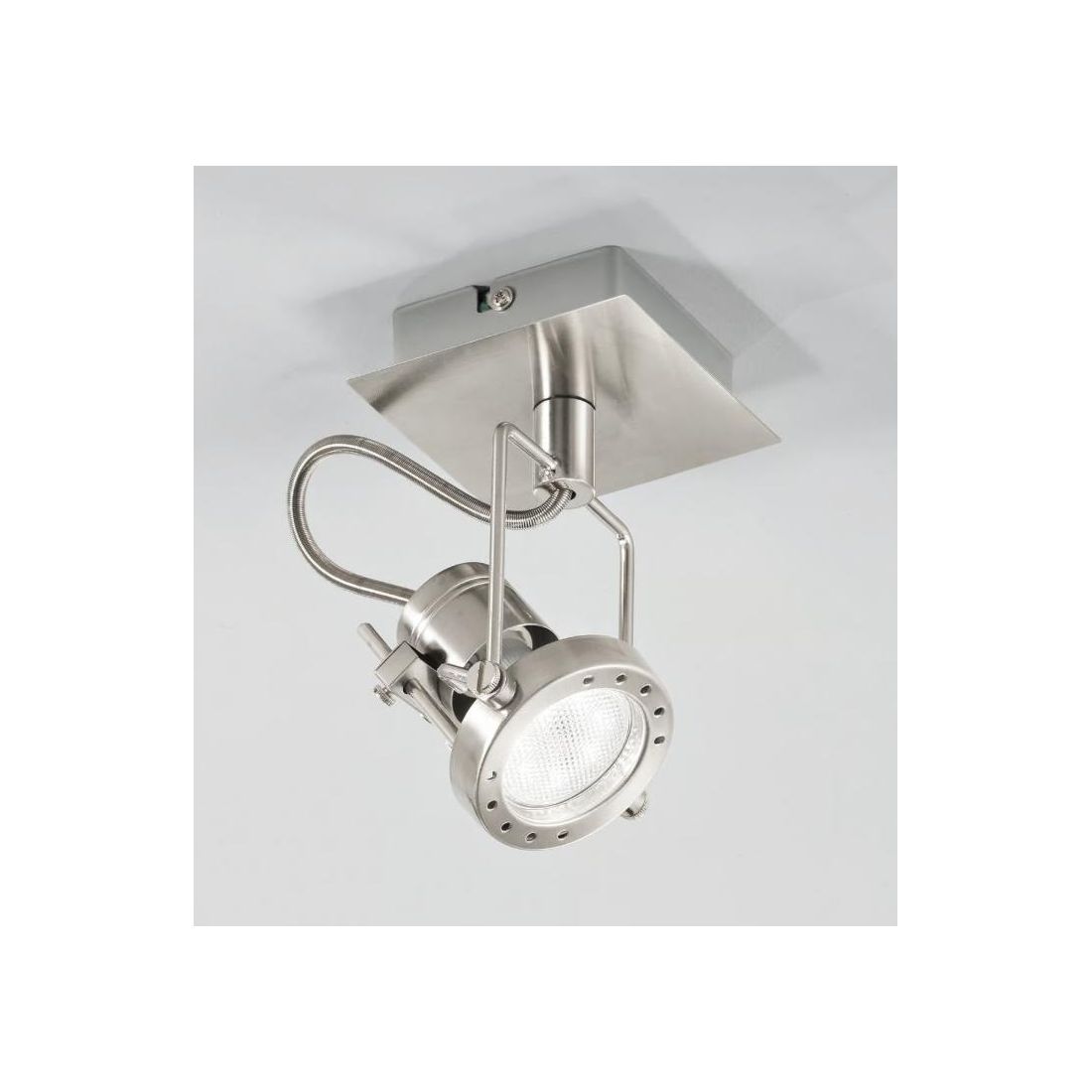 Faretto da soffitto oppure da parete, versatile e con design moderno, dotato di spot orientabile che consente di direzionare la luce esattamente dove serve. È composto da una piccola base quadrata realizzata in metallo con una sofisticata finitura in Nichel spazzolato e la sua struttura rende possibile sia un’illuminazione mirata su punti specifici della stanza sia una distribuzione della luce omogenea per un’illuminazione d’insieme impeccabile.