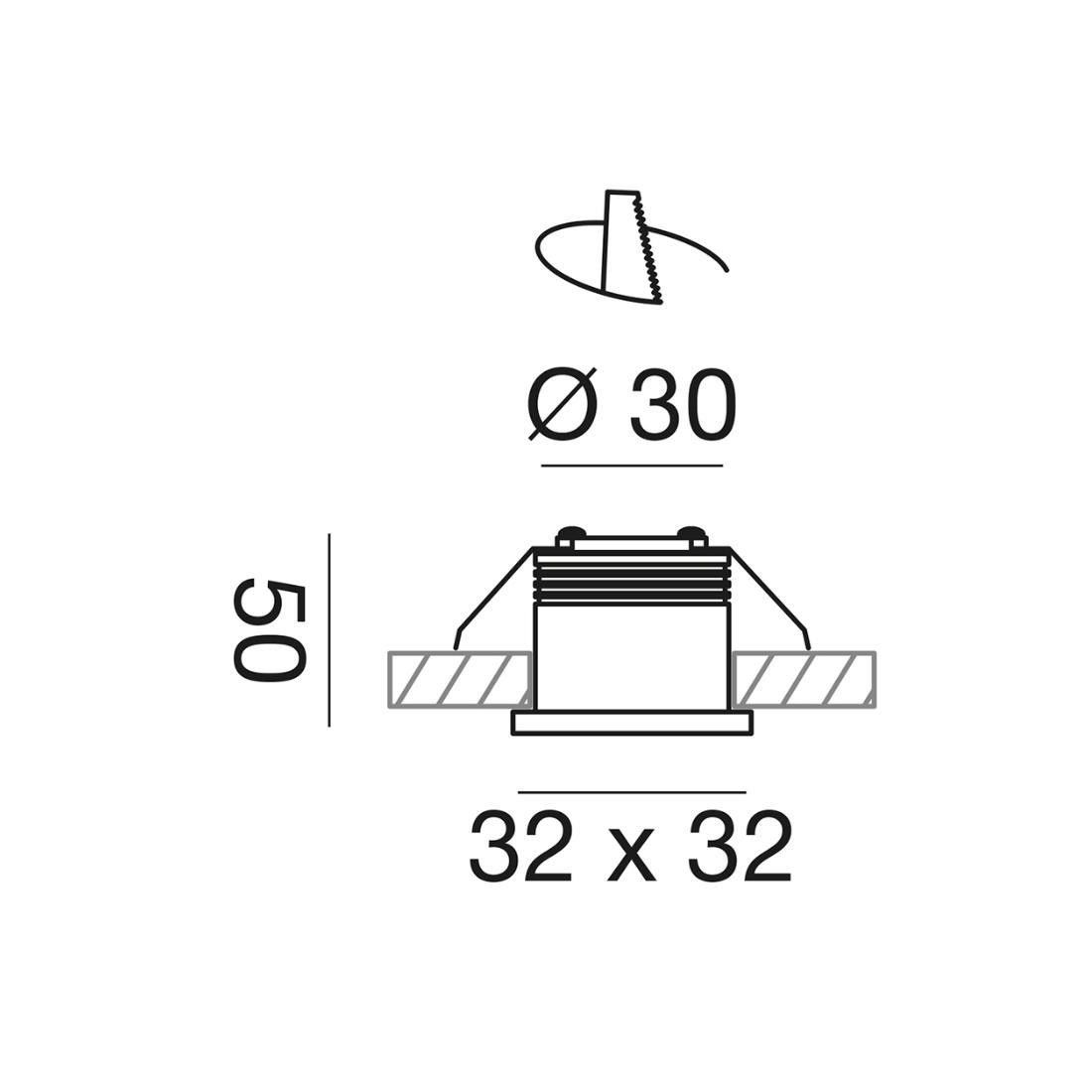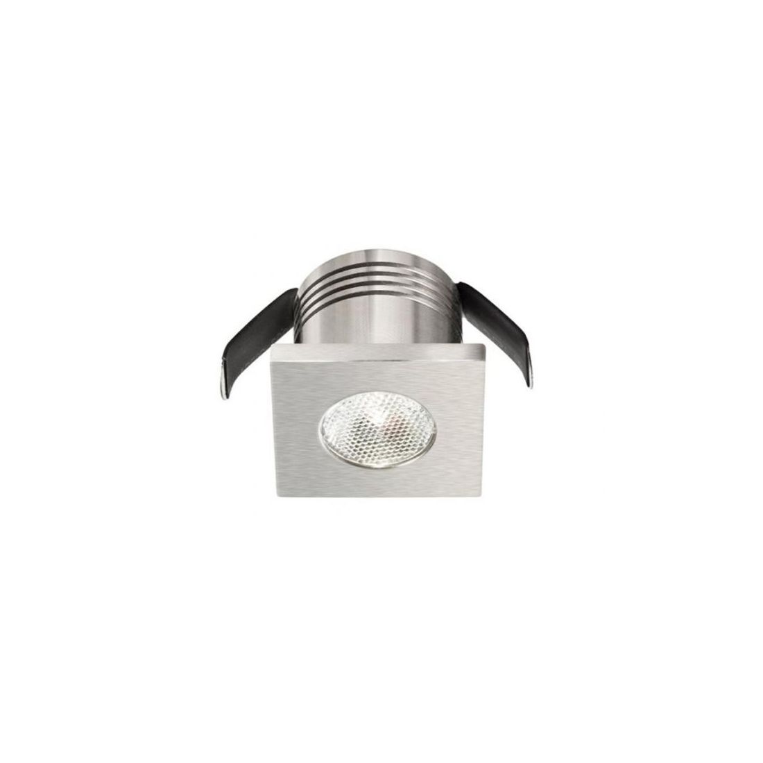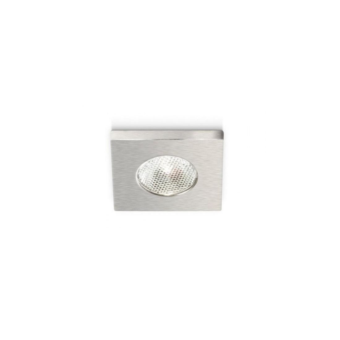 Faretto da incasso a molle, con una forma quadrata, che viene realizzato con la struttura e il dissipatore in alluminio con finitura Bianca oppure Nichel (a vostra scelta); il foro da praticare per l'incasso deve essere con diametro di cm 3.