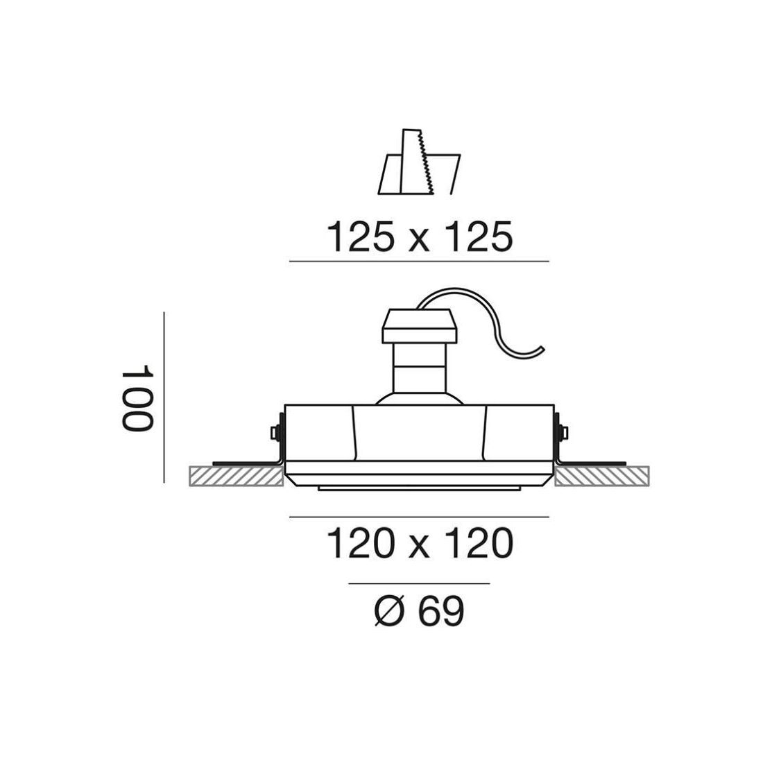 Per installare questo faretto sul controsoffitto in cartongesso occorre semplicemente effettuare il foro di cm 12,5x12,5 e successivamente collegare i cavi e incassare il faretto mediante le molle fornite in dotazione.