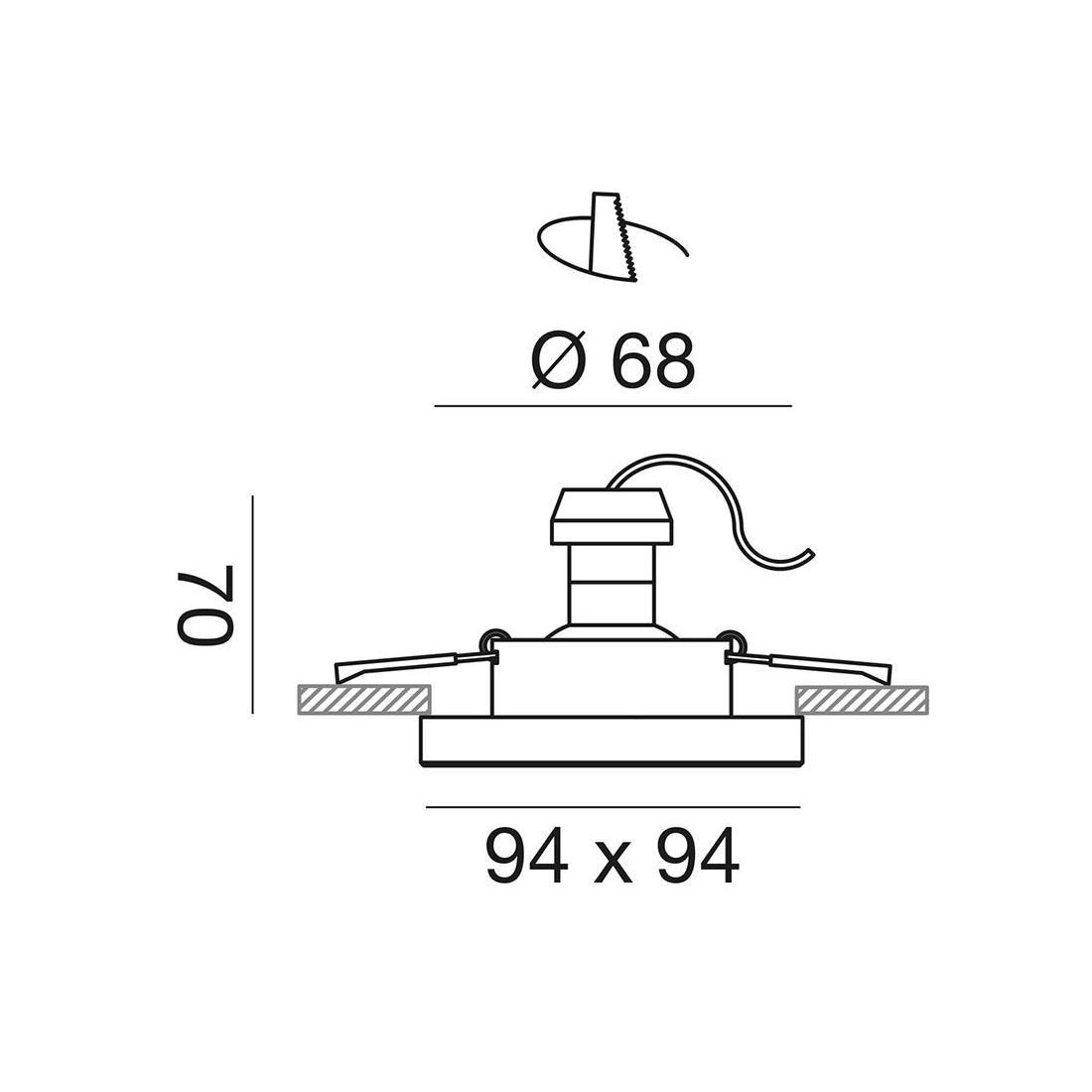 All'interno del faretto è presente un portalampada con attacco GU10 dove è possibile inserire qualsiasi tipo di lampadina a Led, a basso consumo energetico, nel colore e nella potenza che più vi necessita; il foro da praticare per l'incasso deve essere con diametro di cm 6,8.