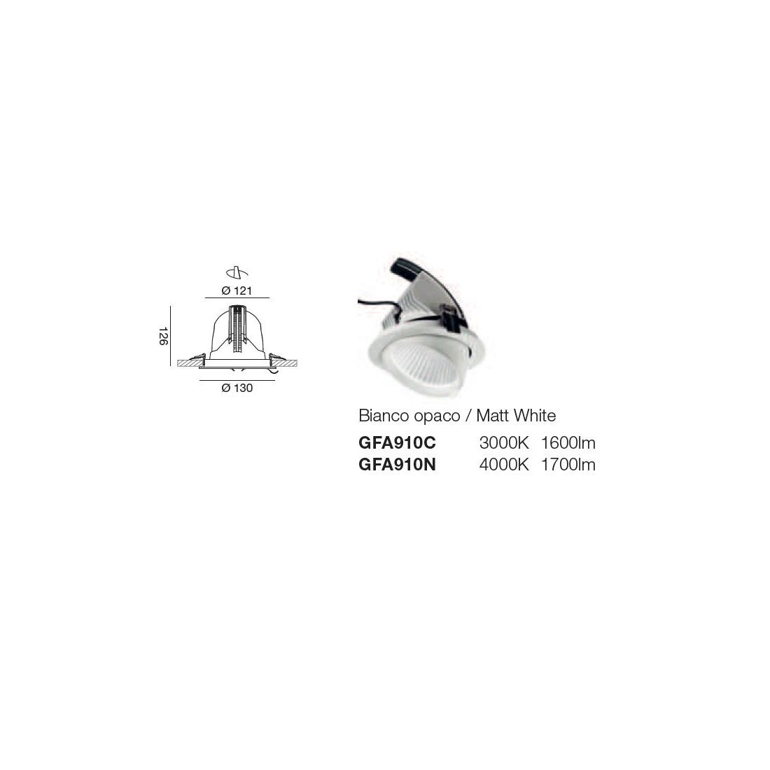 GFA910-GFA911FARETTO DA INCASSO ORIENTABILE 2 MISURE LED 20W-40W LUCE 3000K-4000K ALLUMINIO BIANCO DESIGN MODERNO