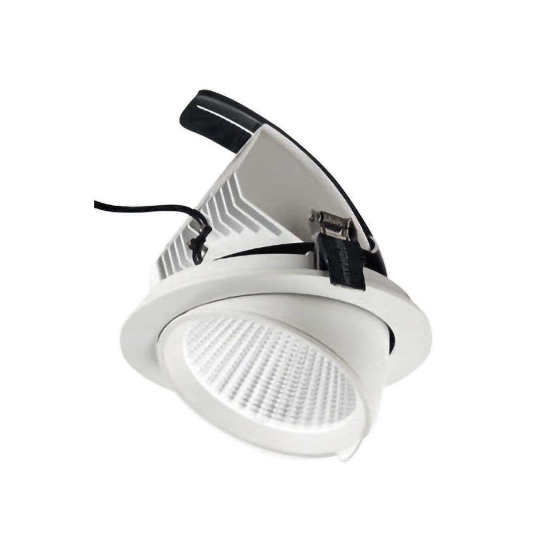 Faretto da incasso che si presenta con struttura e dissipatore in alluminio con finitura Bianca e il diffusore in vetro trasparente specificamente selezionato per massimizzare la trasmittanza luminosa assicurando che il flusso resti nitido e privo di distorsioni, valorizzando al contempo l'architettura degli spazi. Grazie al suo sistema di puntamento basculante, questo faretto permette di orientare il fascio luminoso con precisione trasformando la luce da semplice elemento di servizio a vero e proprio strumento di accento per opere d'arte, dettagli architettonici o zone funzionali.
