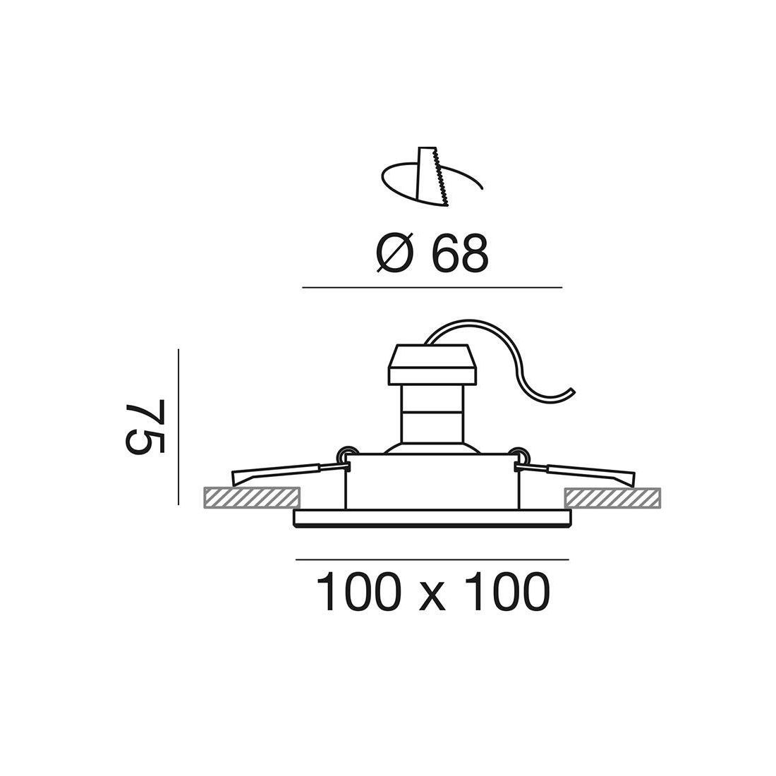 All'interno del faretto è presente un portalampada con attacco GU10 dove è possibile inserire qualsiasi tipo di lampadina a Led, a basso consumo energetico, nel colore e nella potenza che più vi necessita; il foro da praticare per l'incasso deve essere con diametro di cm 6,8.