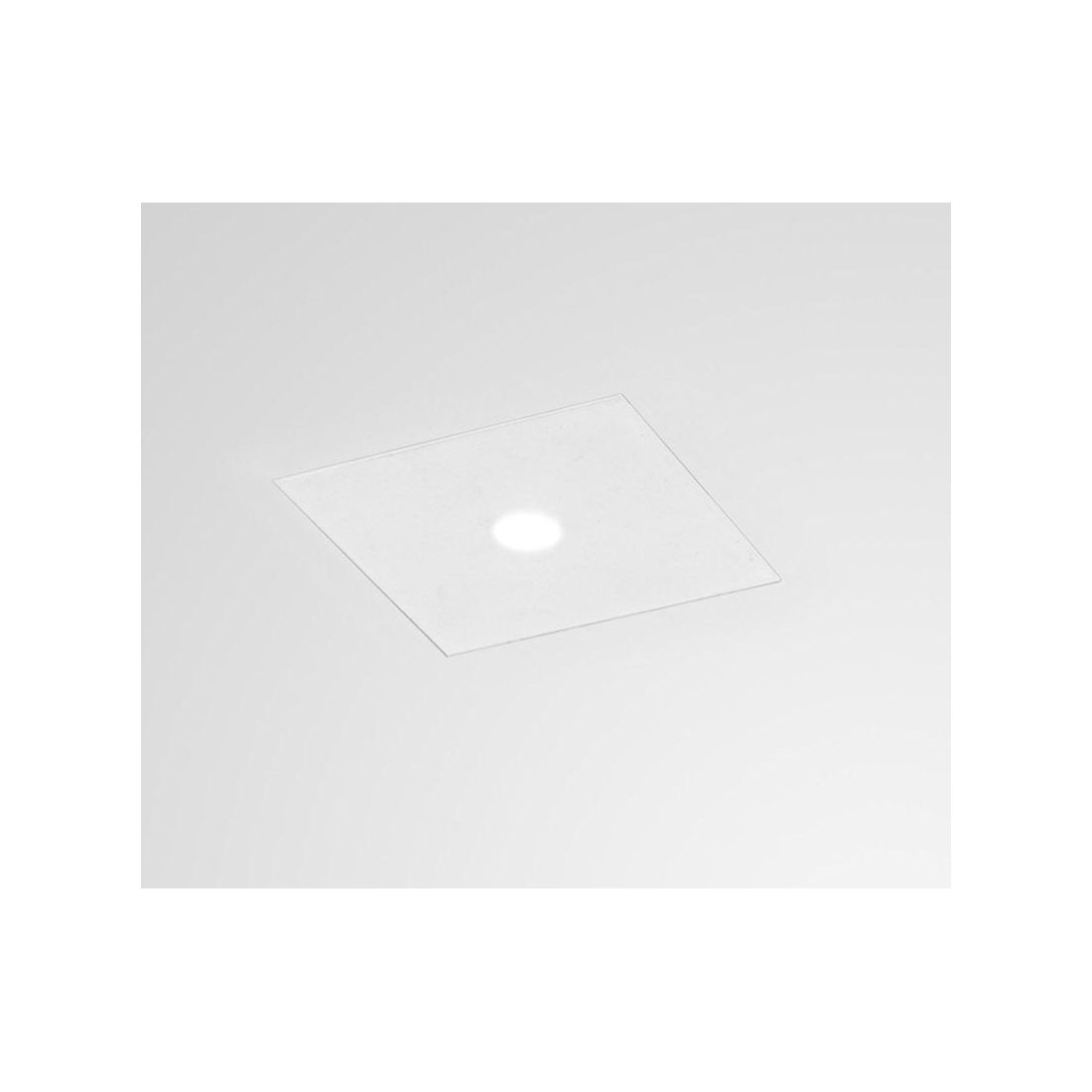 Faretto da incasso di forma quadrata che si presenta con struttura realizzata in gesso bianco progettato per fondersi completamente con la superficie del soffitto infatti, una volta installato, il confine tra l'apparecchio e il cartongesso scompare offrendo un risultato estetico di estrema pulizia. Il faretto, inoltre, può essere tinteggiato con la stessa pittura murale utilizzata per l'ambiente garantendo un'integrazione totale e una continuità visiva impeccabile.