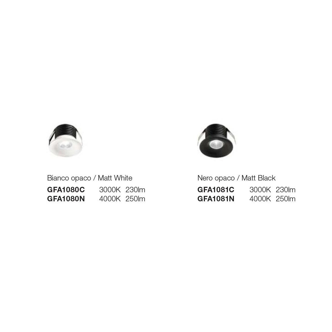 GFA1080-GFA1081FARETTO DA INCASSO ROTONDO ALLUMINIO BIANCO O NERO LED 3W LUCE 3000K-4000K DESIGN MODERNO