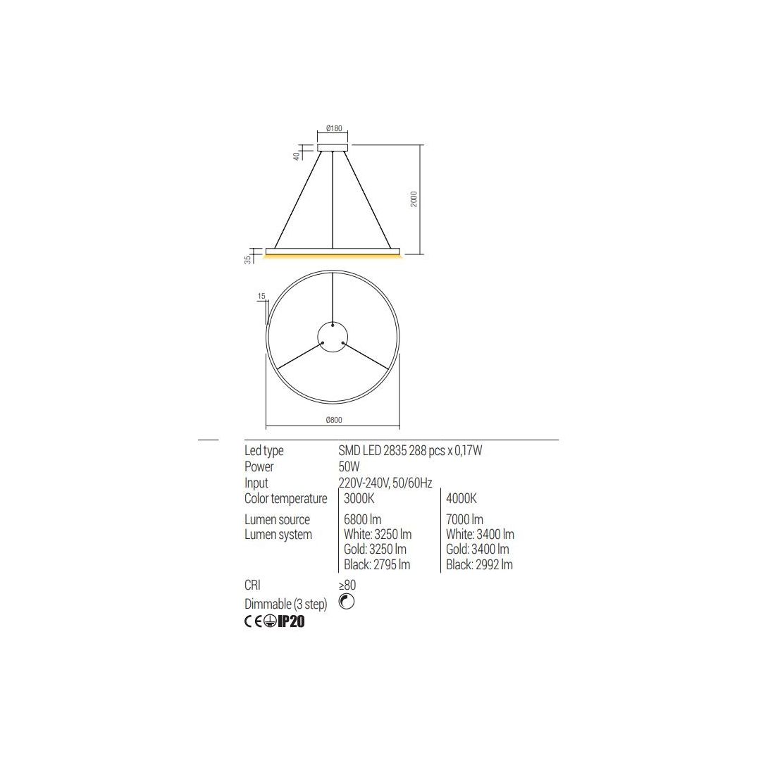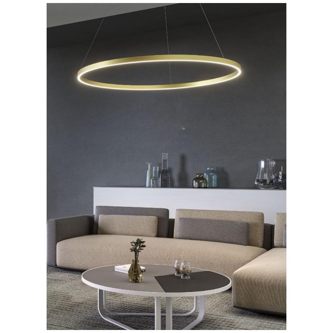 FEBE SOSPENSIONE SINGOLA D100 CM LED 62W LUCE 3000K-4000K DIMMERABILE ALLUMINIO 3...