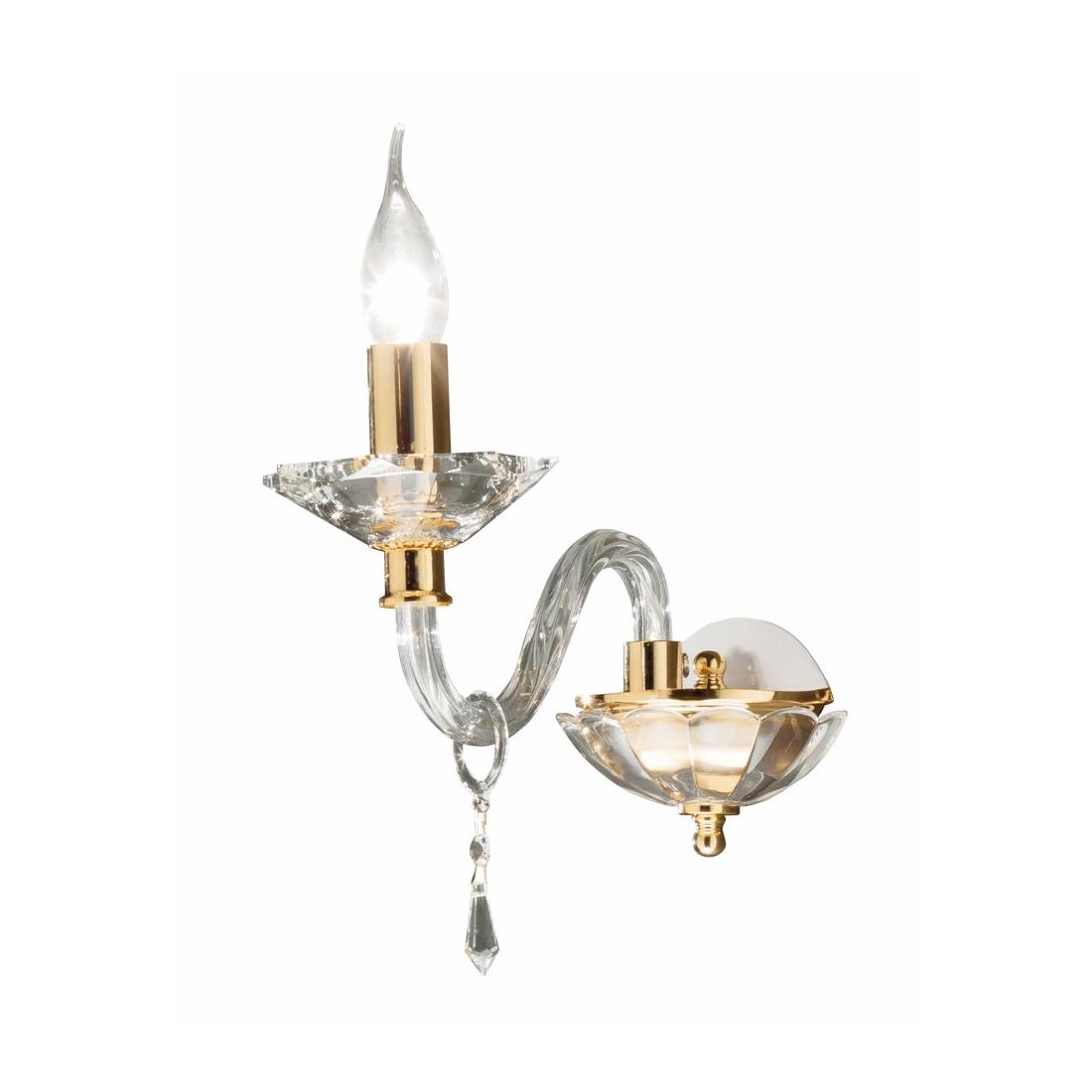 FIAMMA LAMPADARIO A SOSPENSIONE CLASSICO 9 LUCI IN VETRO E CRISTALLO FINITURA ORO DI...