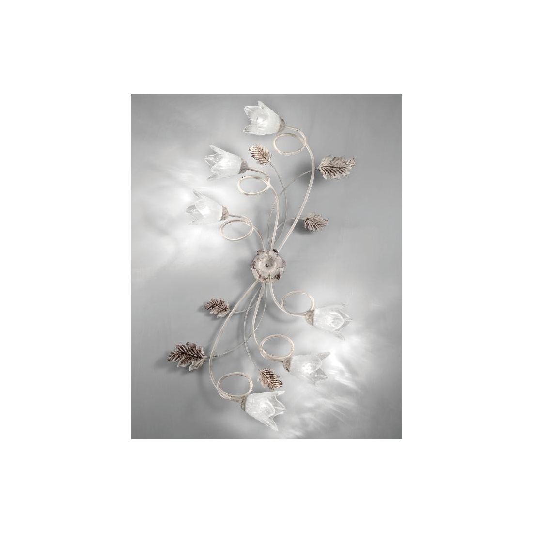 FICO PLAFONIERA 5 LUCI IN METALLO AVORIO O BRONZO FLOREALE CON DIFFUSORI IN VETRO