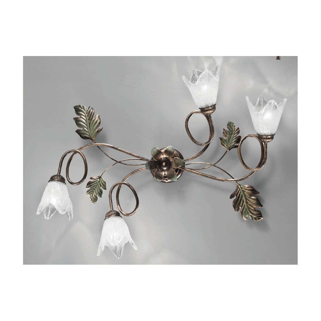FICO PLAFONIERA 5 LUCI IN METALLO AVORIO O BRONZO FLOREALE CON DIFFUSORI IN VETRO