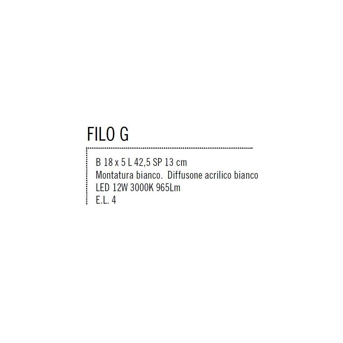 FILO G lampada da parete LED integrato da 12W realizzato con una struttura in metallo bianco e diffusore in acrilico bianco, che si inserisce con eleganza sulla parete garantendo un'ottima diffusione della luce in maniera indiretta sulla parete con fascio luminoso verso l'alto e verso il basso.
