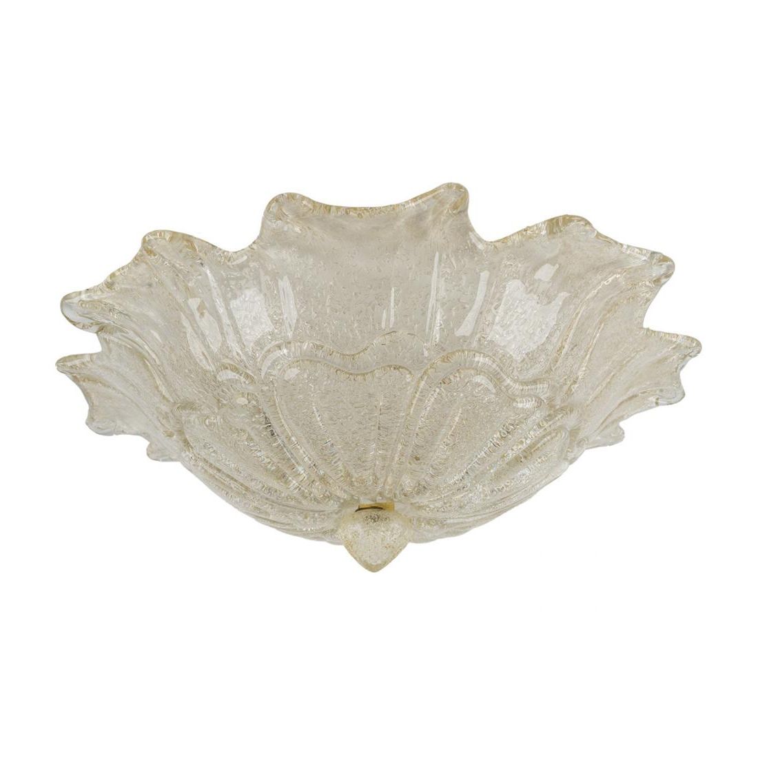 Plafoniera, con un design classico/contemporaneo, realizzata in vetro di Murano Graniglia, lavorato a mano, con motivi a petalo dove il fascino delle forme della natura si unisce alla bellezza del cristallo graniglia che è formato da piccolissimi granelli di vetro murano che formano una superficie solida e opaca capace di diffondere in modo omogeneo e brillante la luce.