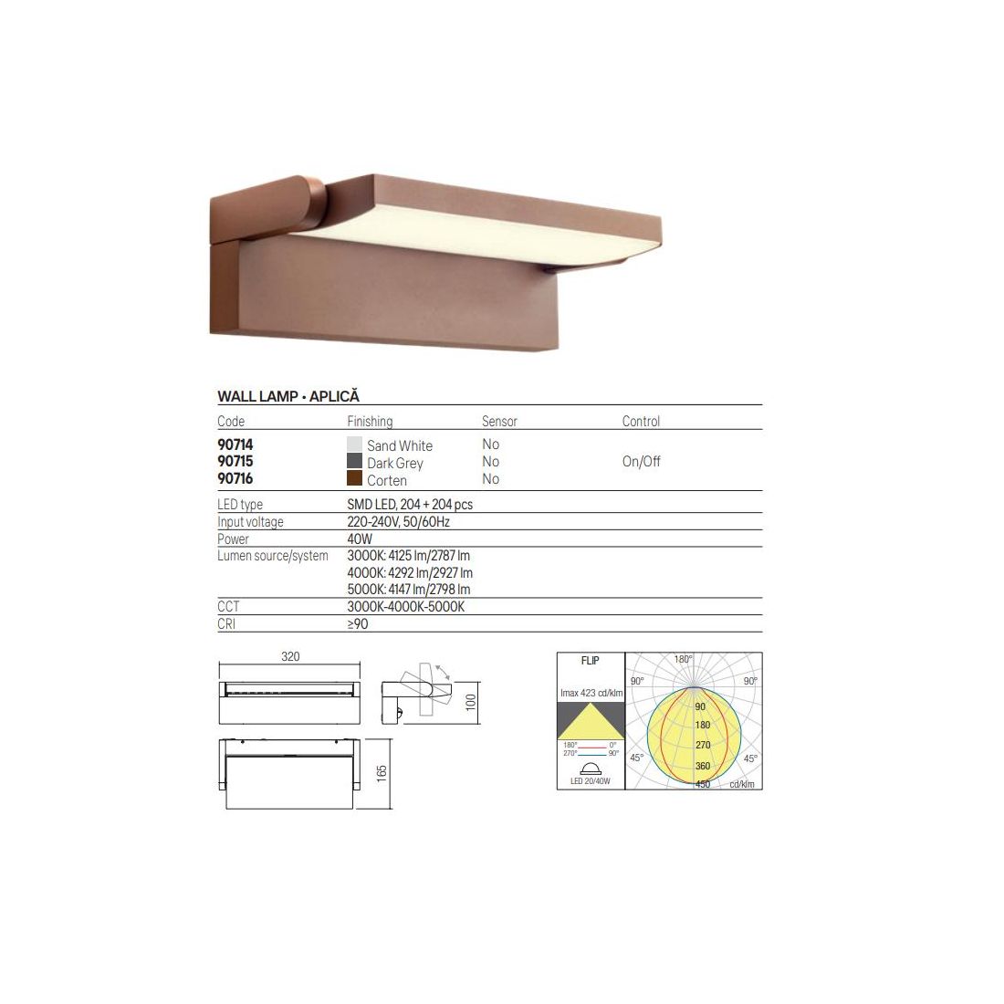 FLIP APPLIQUE ORIENTABILE DA ESTERNO IP54 LED 20W LUCE 3000K BIANCO,ANTRACITE E CORTEN