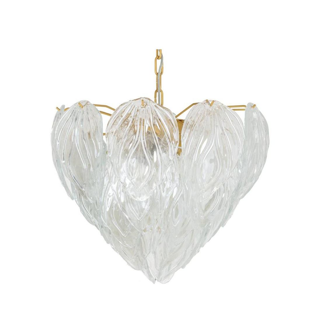 FOGLIA CUORE LP5FOGLIA CUORE LAMPADARIO 5 LUCI CON FOGLIE IN VETRO DI MURANO E STRUTTURA IN ORO ELEGANTE E MODERNO
