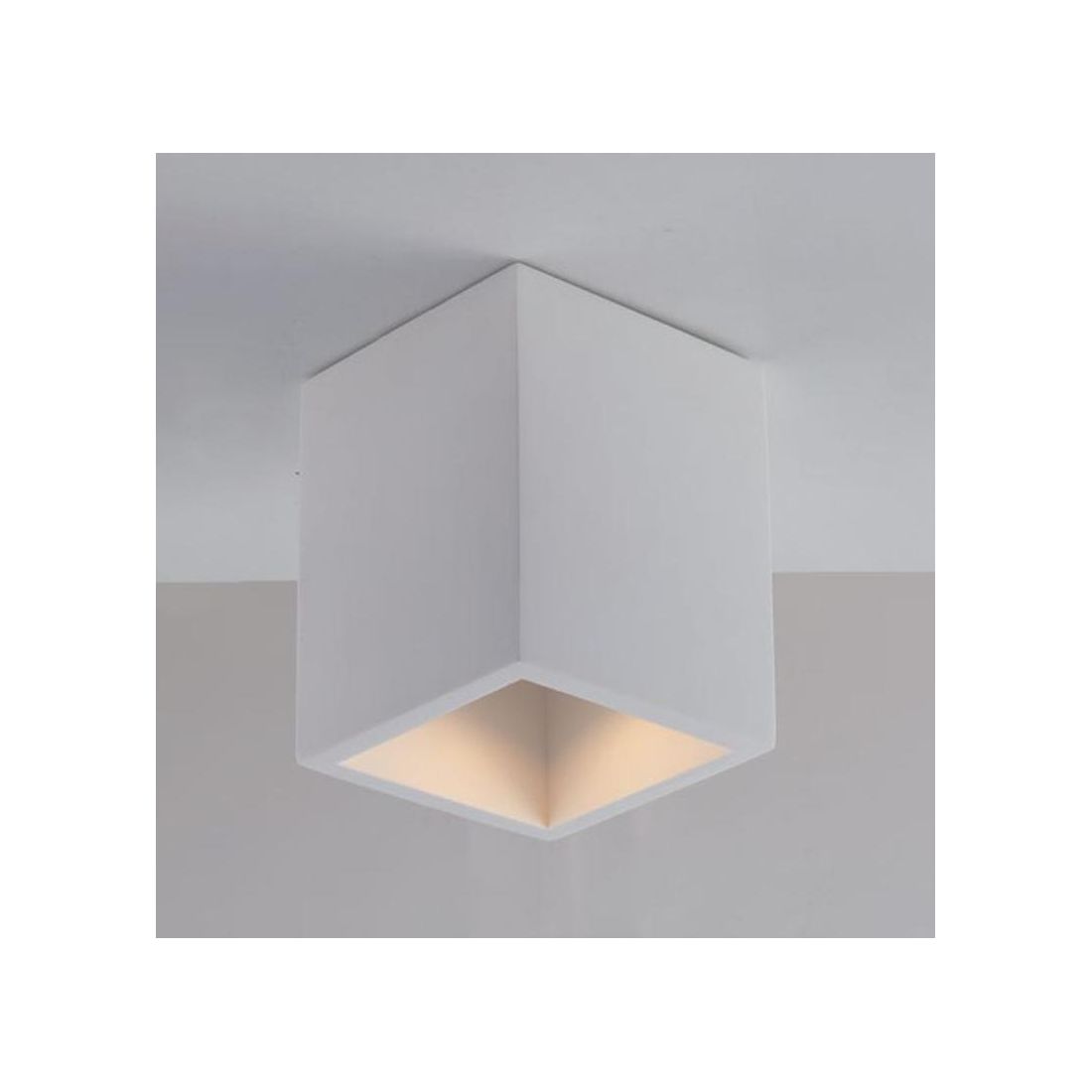 Plafoniera dallo stile contemporaneo caratterizzata da un design a forma di cubo dalle dimensioni compatte (11x11 cm) perfetta per chi cerca una soluzione luminosa discreta ma dal forte impatto visivo. Viene realizzata in gesso bianco verniciabile che offre un'elevata personalizzazione consentendo di essere dipinta con una normale pittura per armonizzarsi al meglio con l’arredamento del tuo ambiente.