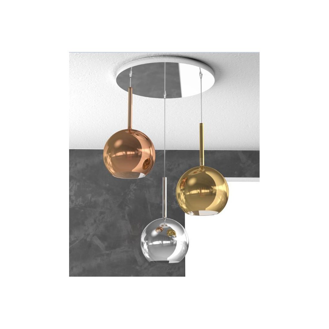 FUTURE SOSPENSIONE IN METALLO CROMATO CON 3 SFERE DI 20CM IN VETRO DISPONIBILE IN 5 COLORI