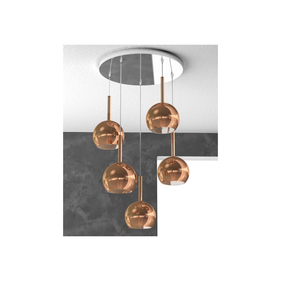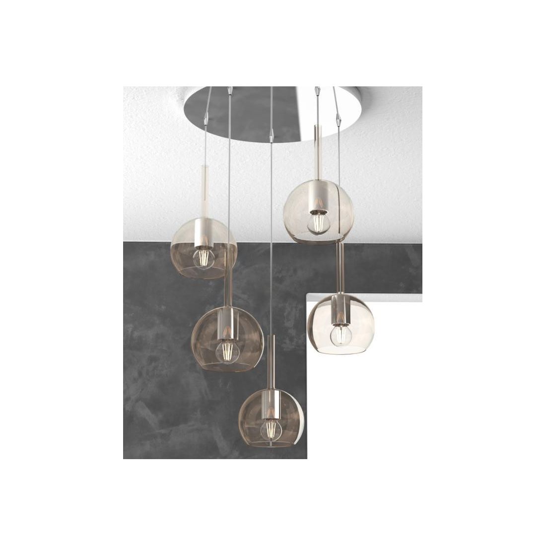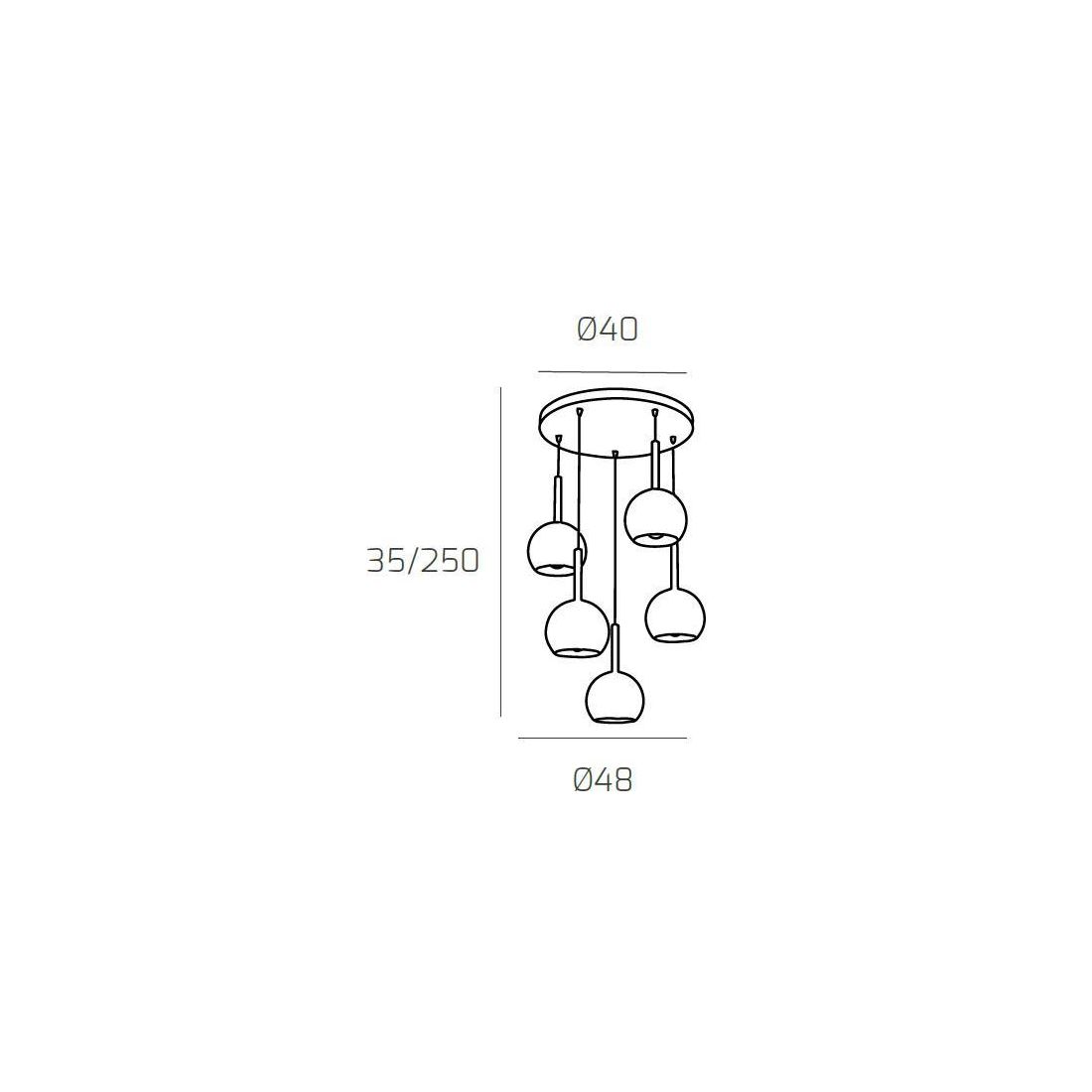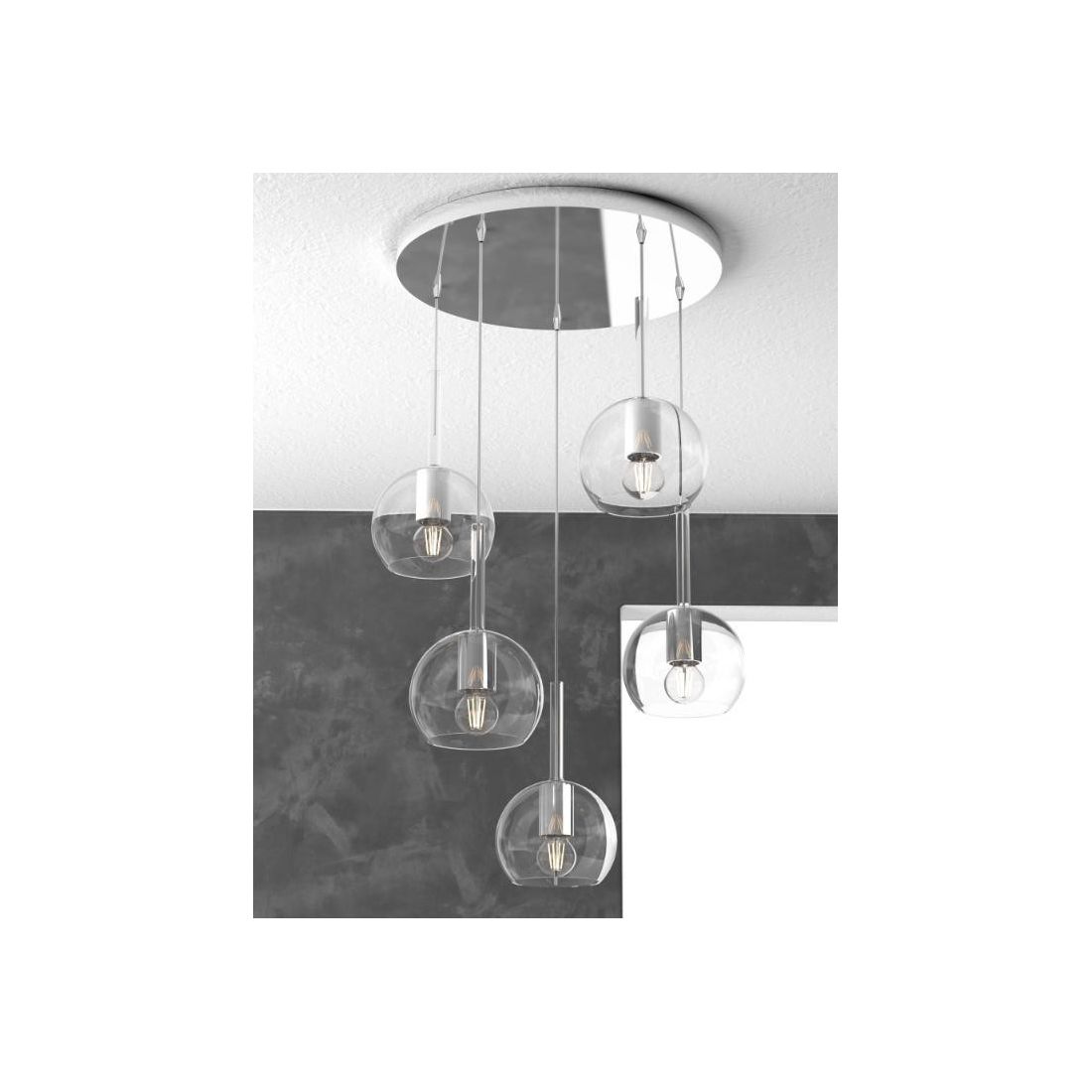 FUTURE SOSPENSIONE IN METALLO FINITURA CROMO CON 5 DIFFUSORI A SFERA REALIZZATI IN...