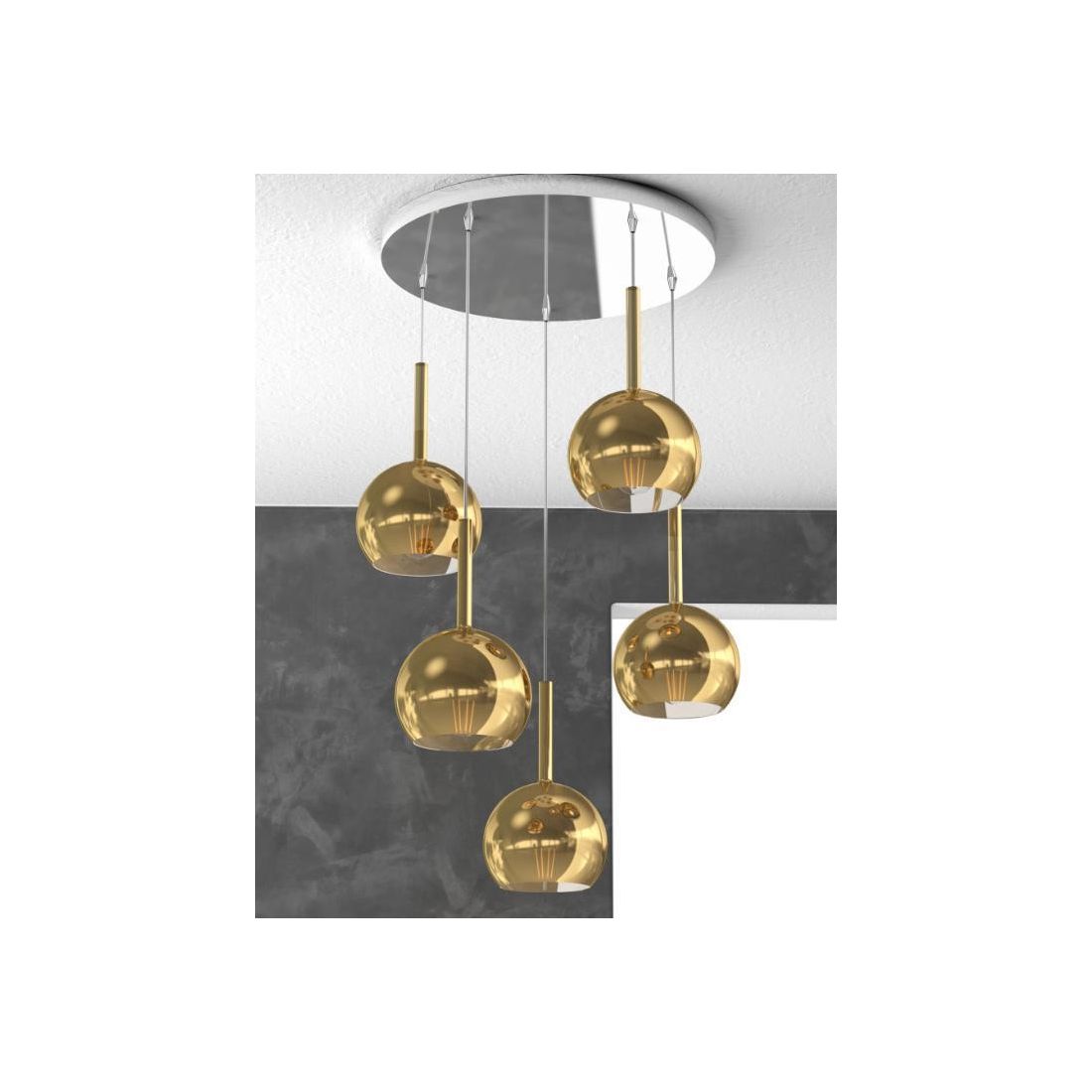 FUTURE SOSPENSIONE IN METALLO FINITURA OTTONE CON 7 DIFFUSORI A SFERA REALIZZATI IN...