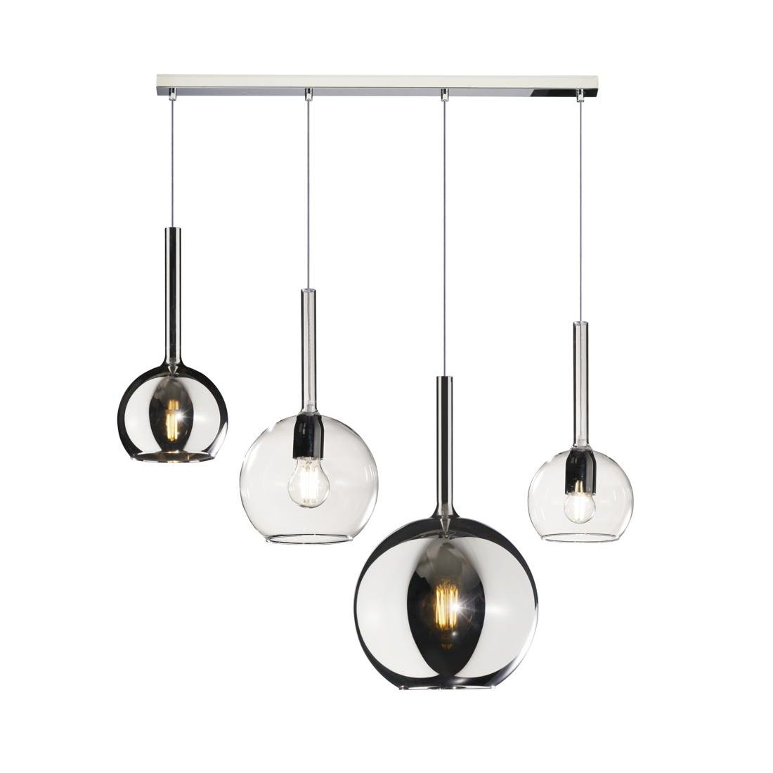 FUTURE SOSPENSIONE SINGOLA IN METALLO CROMO O BIANCO CON SFERA 25CM IN VETRO CON 5...