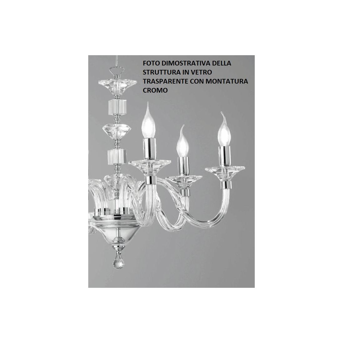 GALA 6 LUCI LAMPADARIO CLASSICO ED ELEGANTE IN CRISTALLO E VETRO IN 6 FINITURE COLORE