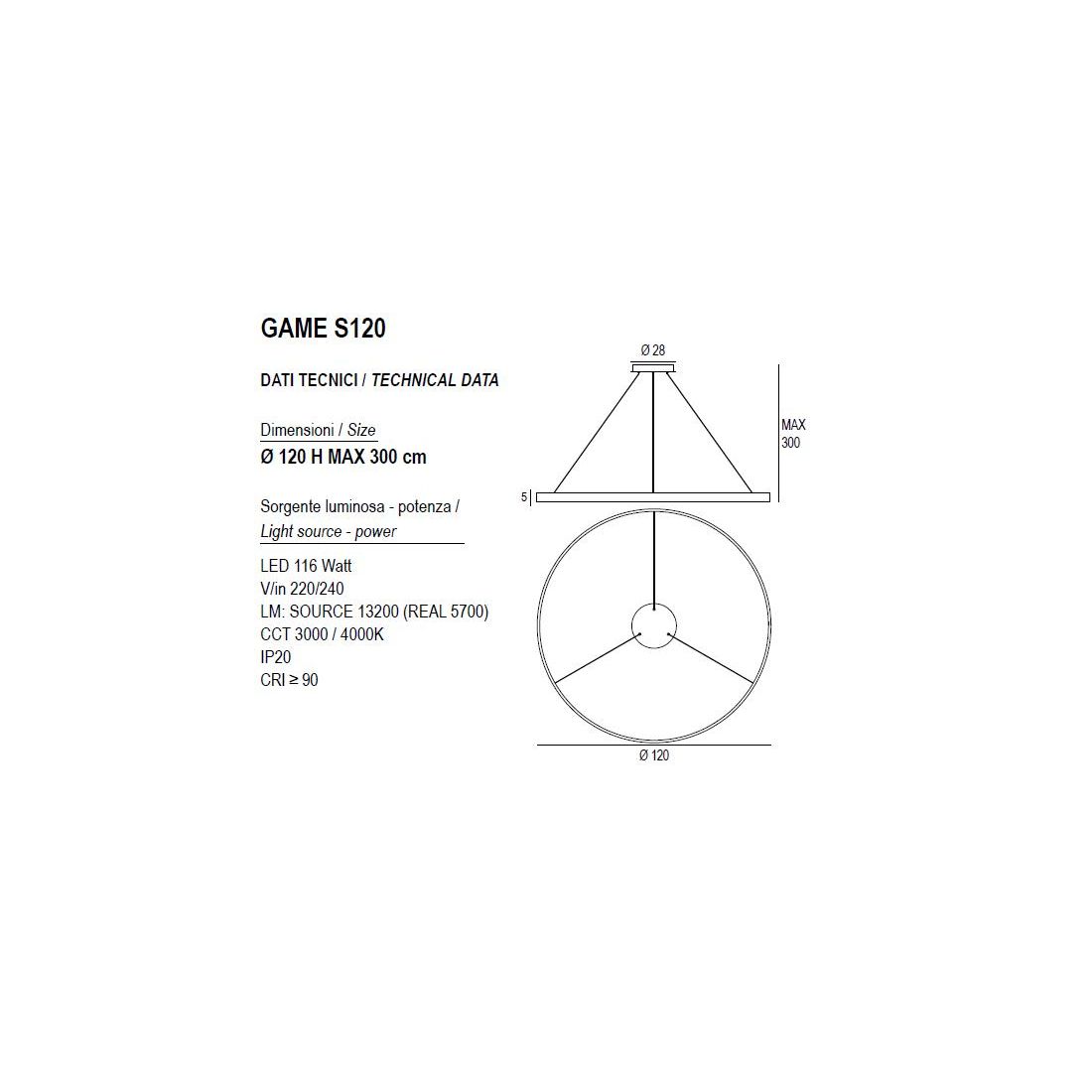 GAME S100 SOSPENSIONE SINGOLA CON ANELLO DI 100 CM BIEMISSIONE LED 83W CCT 3000K-4000K...