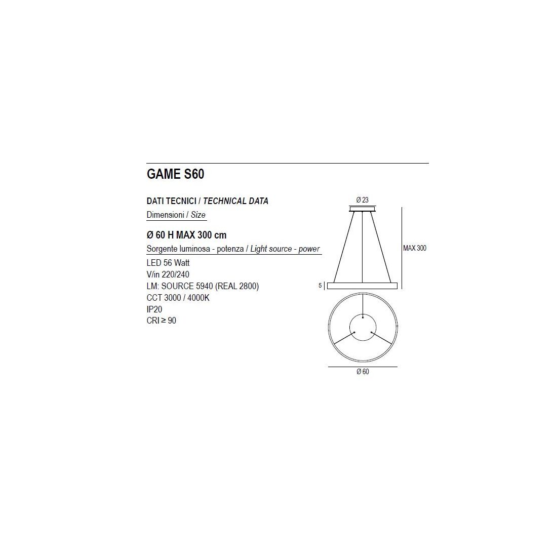 GAME S100 SOSPENSIONE SINGOLA CON ANELLO DI 100 CM BIEMISSIONE LED 83W CCT 3000K-4000K...