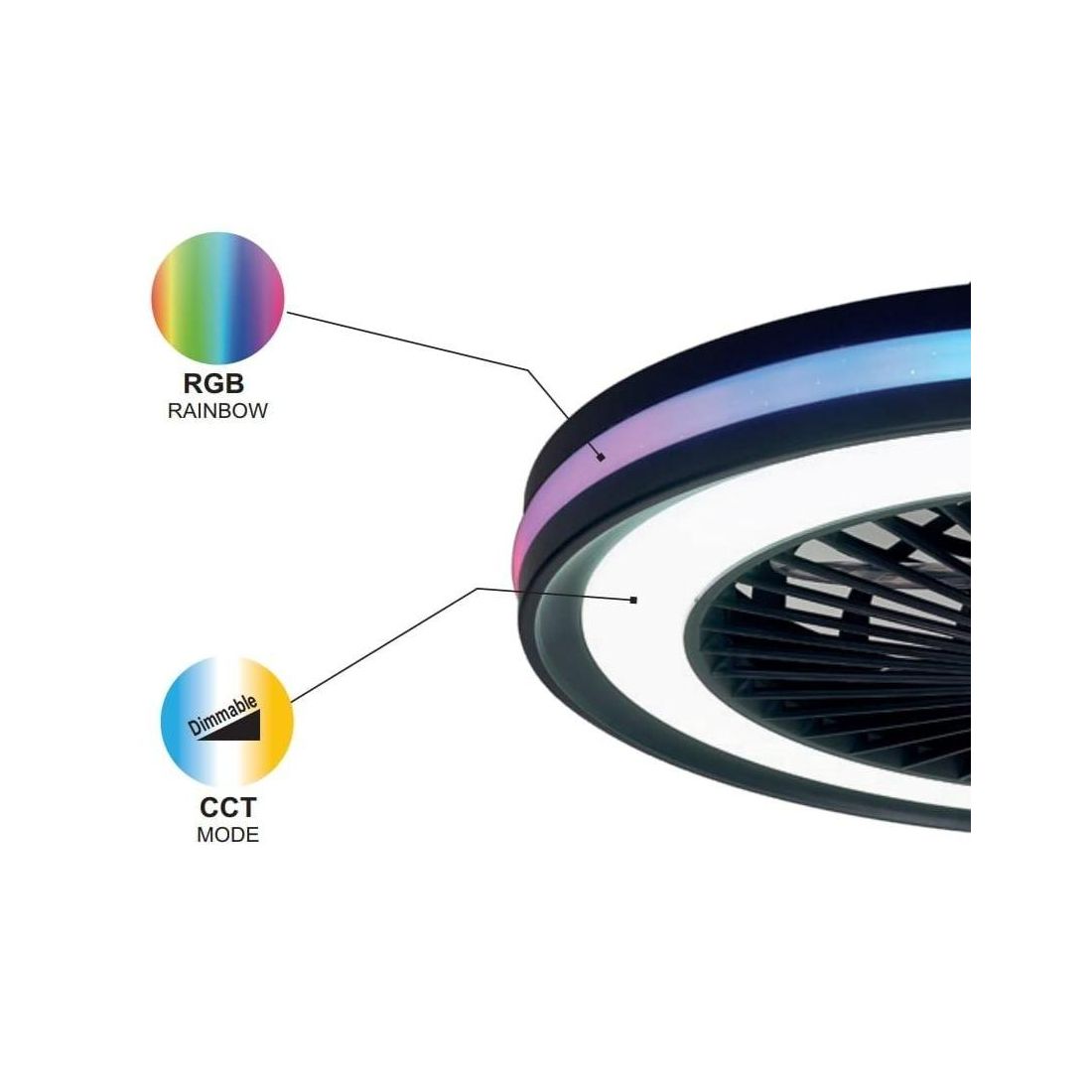GAMERGAMER VENTILATORE MODERNO LED 40W DIMMERABILE TECNOLOGIA RGB TELECOMANDO INCLUSO 2 COLORI