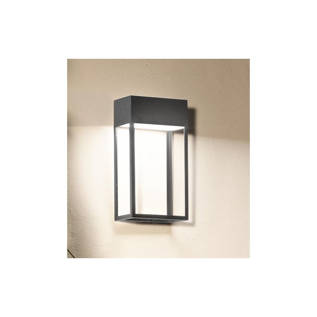 Lampada da parete con un design moderno, che si presenta con la struttura rettangolare aperta realizzata in alluminio verniciato nei colori Antracite, Corten e Bianco (a vostra scelta) per adattarsi armoniosamente a contesti residenziali e commerciali dal gusto contemporaneo o più classico. Il diffusore in policarbonato, resistente agli agenti atmosferici, contribuisce a distribuire la luce in modo uniforme nell’ambiente evitando abbagliamenti e creando un’atmosfera accogliente e funzionale.