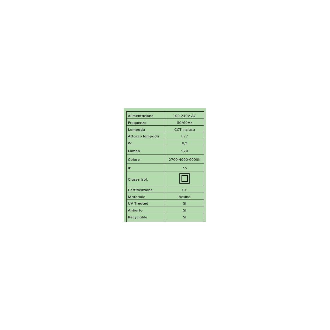 NARDO-ROBY APPLIQUE IN RESINA IP55 DIFFUSORE OPALE 3 COLORI MADE IN ITALY FUMAGALLI