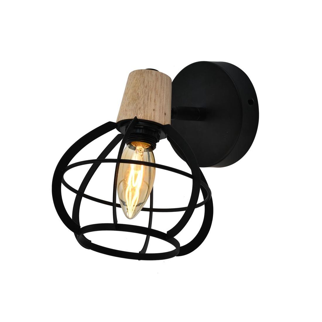 Spot ad una luce, dallo stile vintage, che si presenta con una piccola base rotonda in metallo nero così come il diffusore, a forma di gabbietta, dove il portalampada ha una copertura in legno e presenta un attacco E14 dove è possibile inserire lampadine a Led a basso consumo energetico, sia in colore bianco caldo 3000k o bianco naturale 4000k e nella potenza che più desiderate in base alle vostre esigenze.