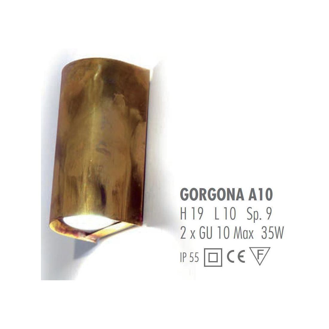 GORGONA A16 SPOT APPLIQUE PER ESTERNO IN OTTONE NATURALE O VERNICIATO DI CORTEN O...
