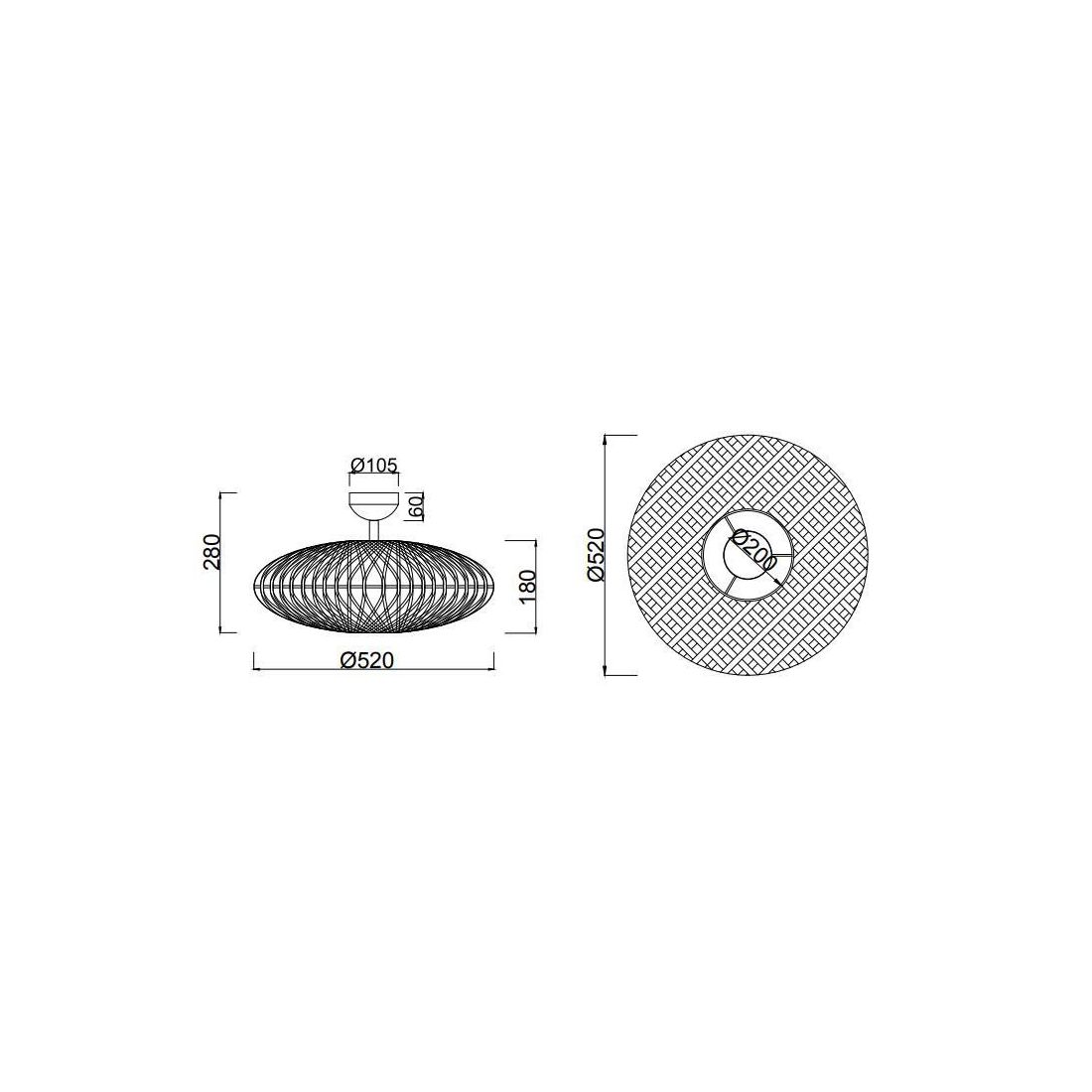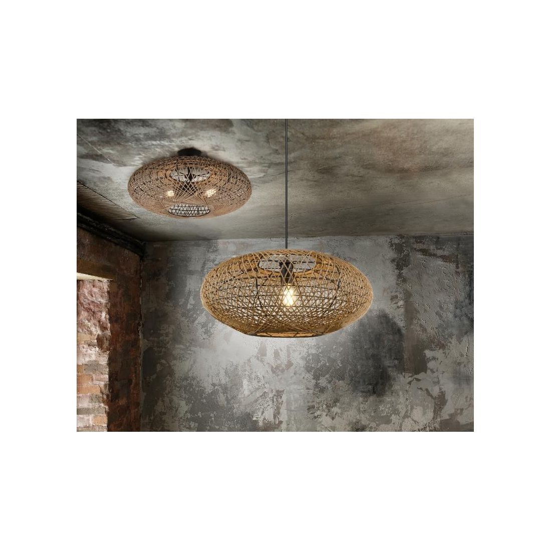Plafoniera originale, dallo stile vintage, che si presenta con la montatura in metallo con finitura Nera e con il diffusore, del diametro di cm 52, realizzato in fibra di Sisal marrone intrecciata, che è un materiale estremamente resistente, biodegradabile, molto diffuso per la produzione di corde o spaghi.