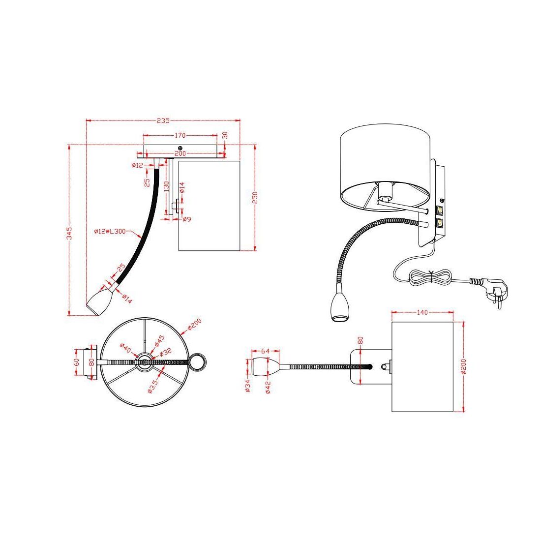 HOTEL PIANTANA CON LUCE DA LETTURA ORIENTABILE FINITURA CROMO, NICHEL O OTTONE PARALUME...