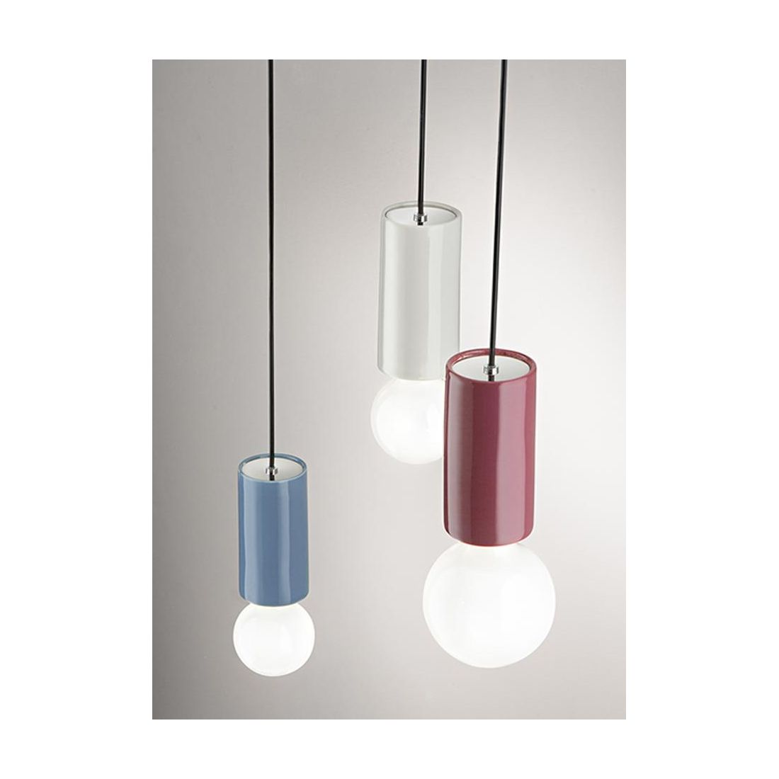 Piccola sospensione singola, dallo stile contemporaneo, che si presenta con rosone a soffitto in metallo nero e con diffusore, di forma cilindrica, realizzato in ceramica smaltata proposto in 5 diverse finiture: Bianco, Grigio, Blu, Verde e Bordeaux. Il cavo di sospensione è regolabile in altezza consentendo di posizionare la fonte luminosa alla distanza ideale dal soffitto, in base alla tipologia di ambiente e all’effetto scenico desiderato. Le dimensioni contenute del diffusore lo rendono particolarmente adatto per composizioni multiple, da installare in linea o a grappolo per creare soluzioni di illuminazione creative, dinamiche e dal forte impatto estetico.