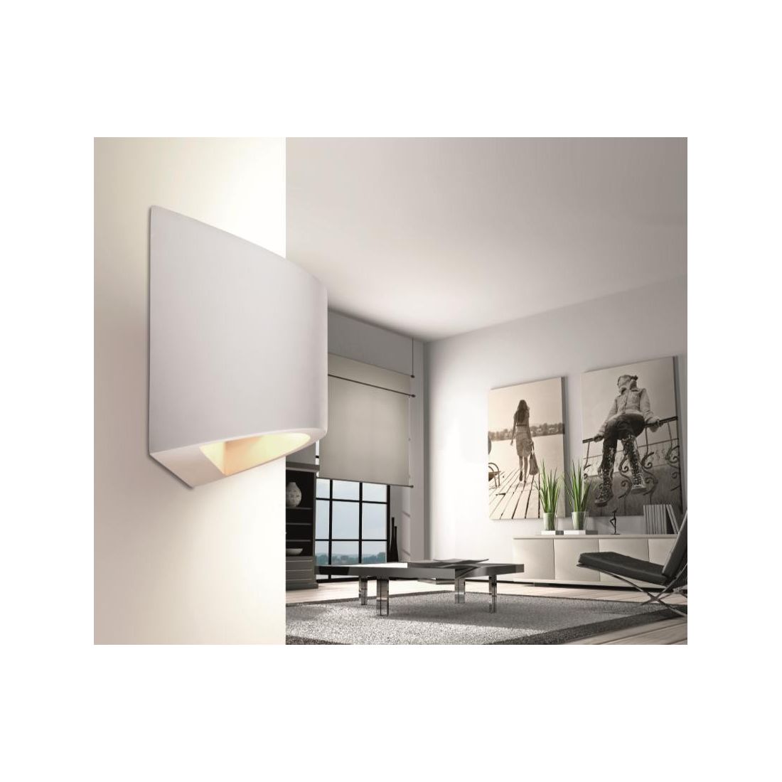 IDRA di Pan international è un applique moderno dalla forma a fascia realizzato in gesso verniciabile con colori ad acqua per poterlo inserire ancor meglio nei propri ambienti. la sua linea pulita e lineare è adatta per qualsiasi ambiente della propria casa come l'ingresso le scale o il soggiorno.