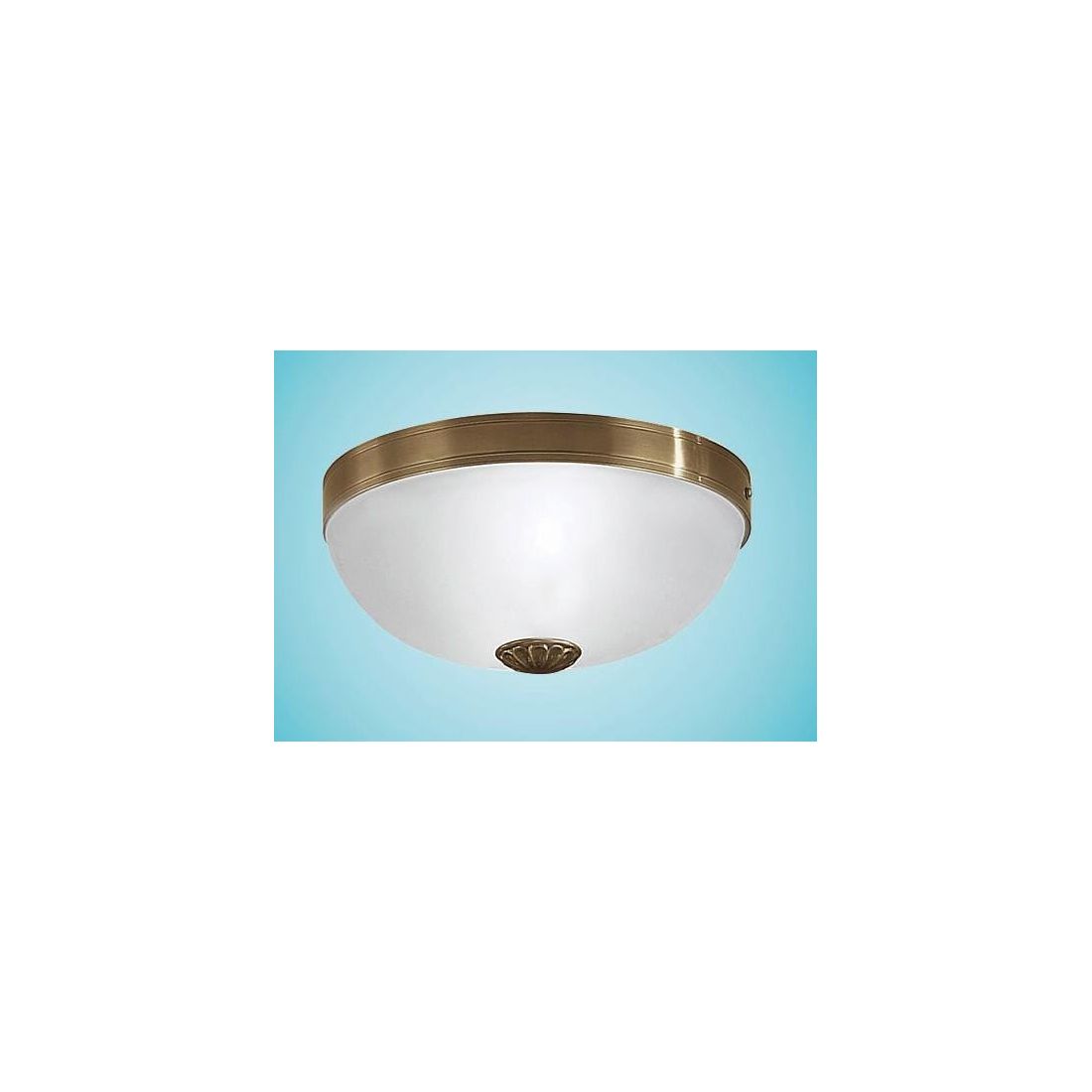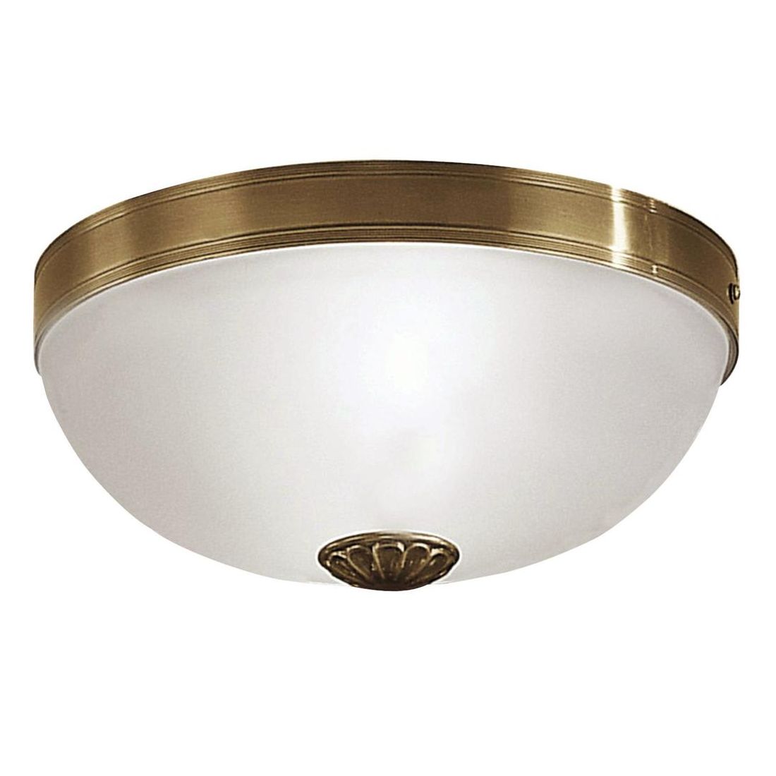 Plafoniera dallo stile prettamente classico che si presenta con una struttura realizzata in metallo con finitura Brunito e con il diffusore realizzato in vetro satinato bianco.
