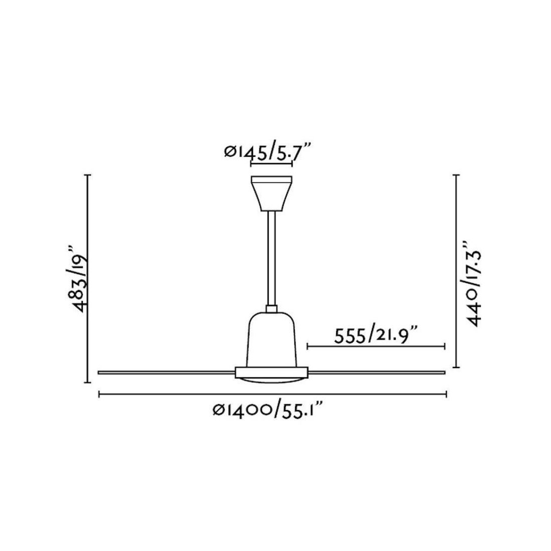 INDUS è un ventilatore da soffitto dal design semplice e lineare, senza luce, ideale per stanze da 17,6m2 come soggiorno, salotto, cucina, camera da letto o ufficio.