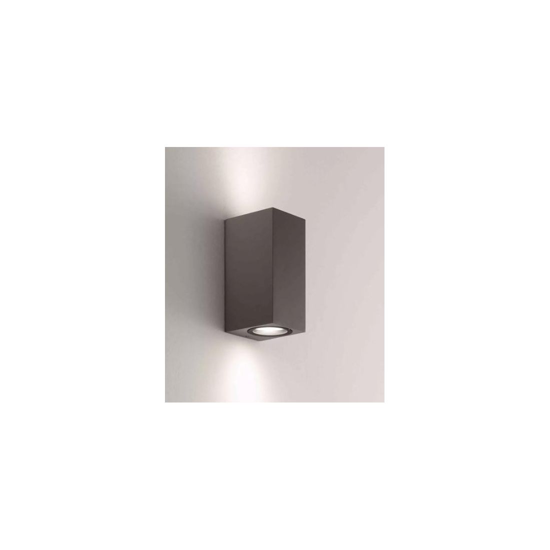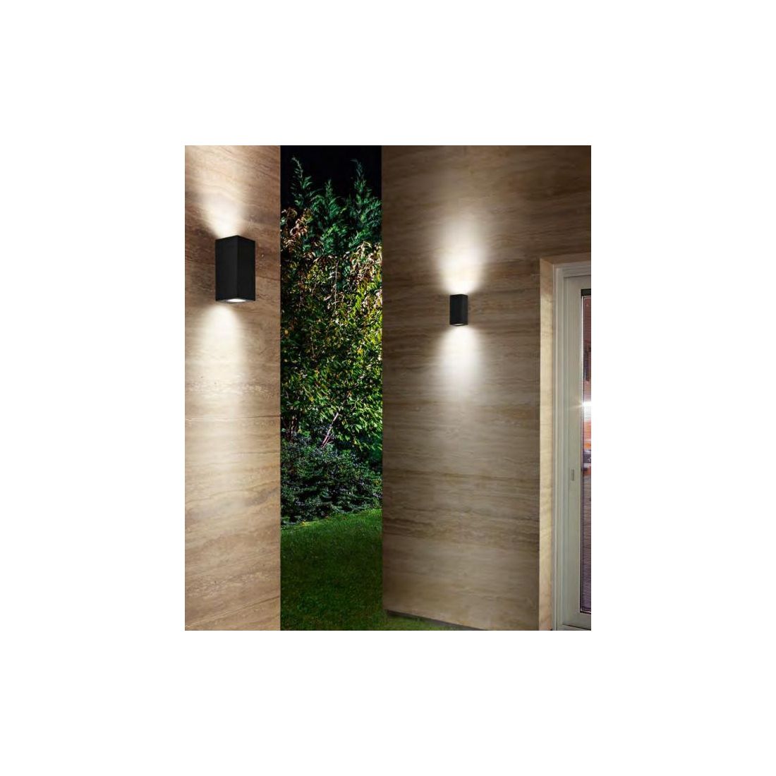 Ischia di Isyluce un applique per esterno a forma di parallelepipido in alluminio verniciato di bianco sabbiato oppure di antracite sabbiato. E'una lampada da parete con illuminazione up and down un illuminazione di accento sulla parete verso l'alto e verso il basso.