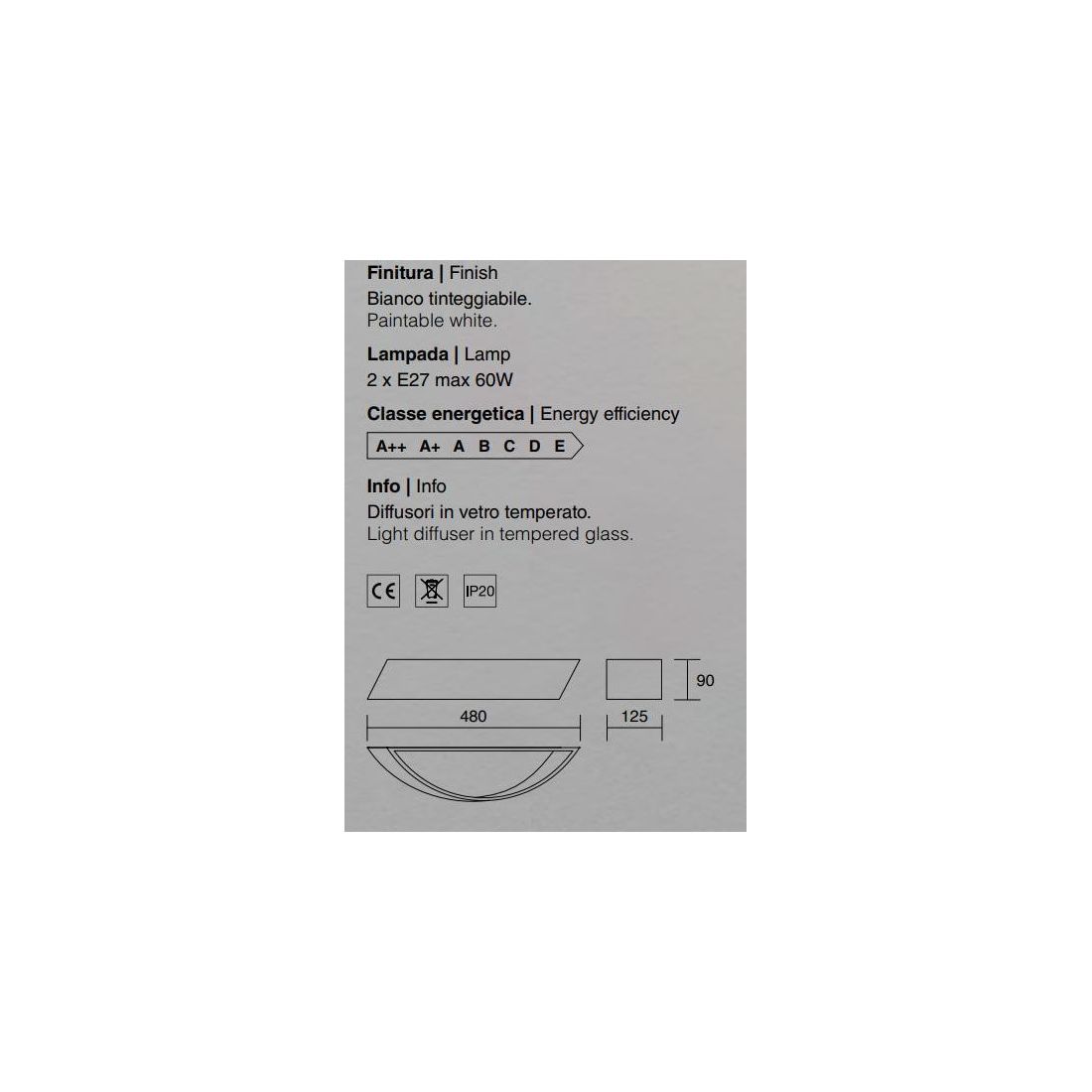 La luce è rivolta sia verso il basso che verso l'alto in uguale quantità e le lampadine sono coperte da vetro temperato per dare omogeneità alla luce e protezione da polveri ed insetti.