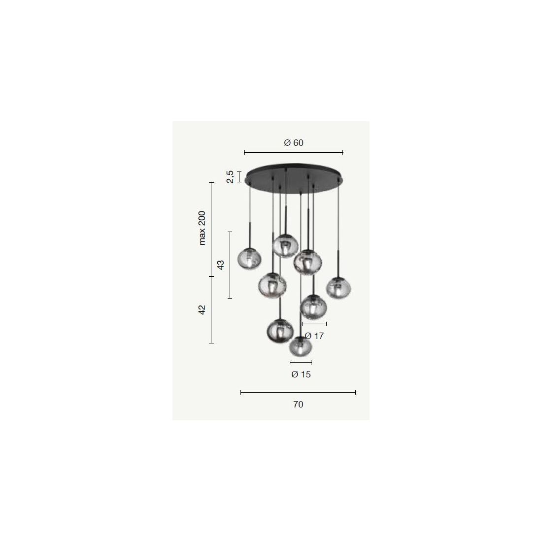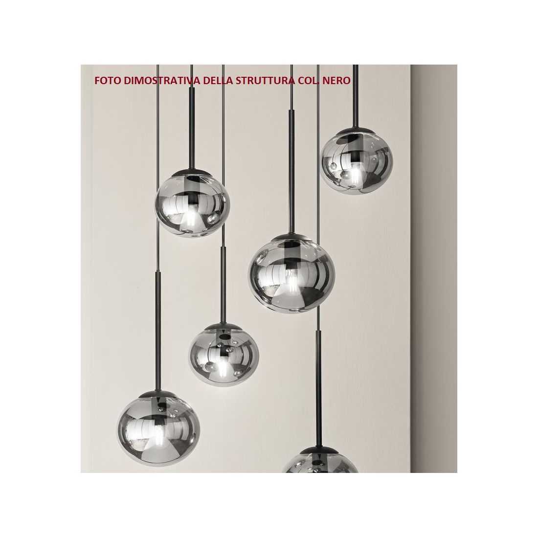 JEWEL SOSPENSIONE MODERNA 6 LUCI NERA O ORO CON SFERE IN VETRO FUME O BIANCO LAMPADINE...