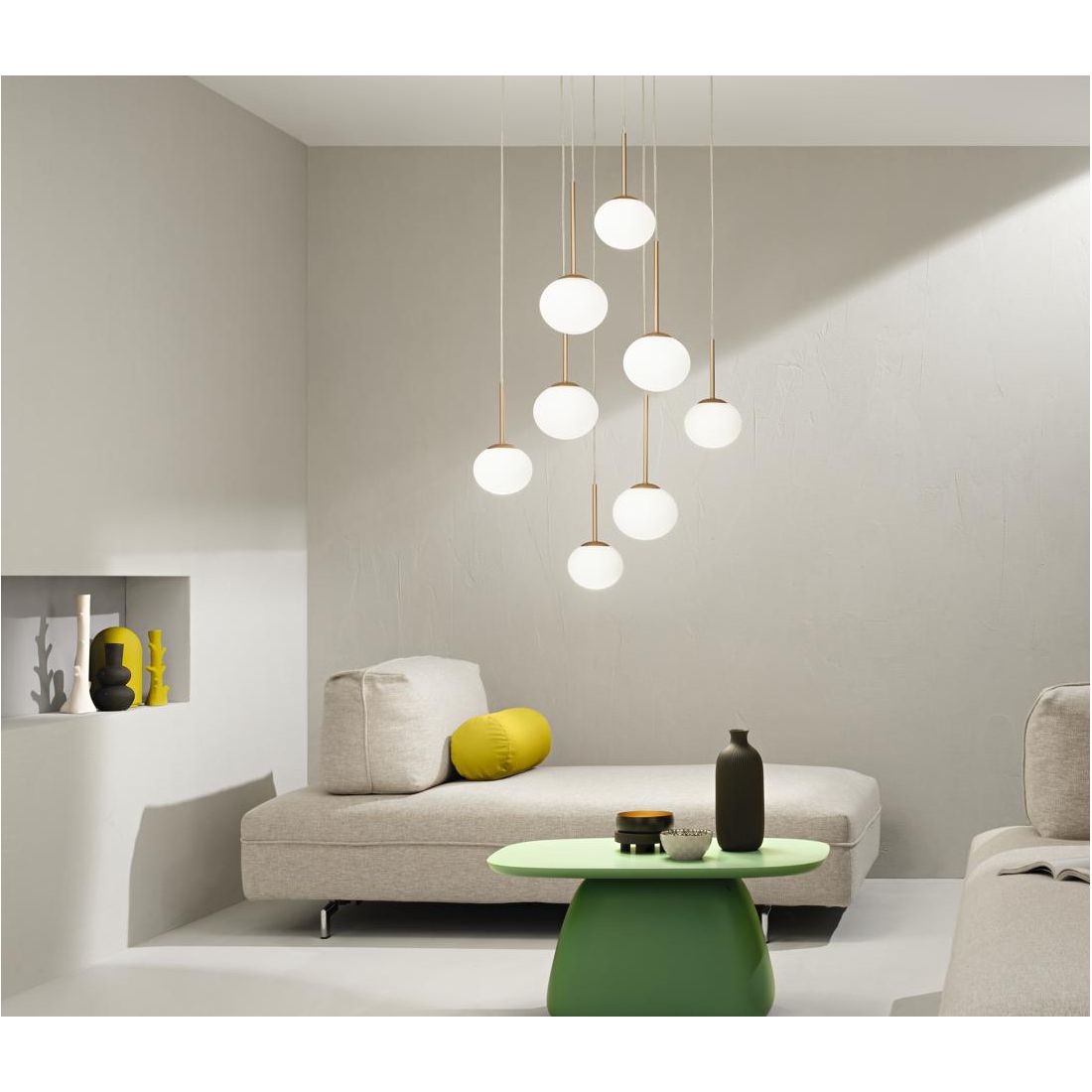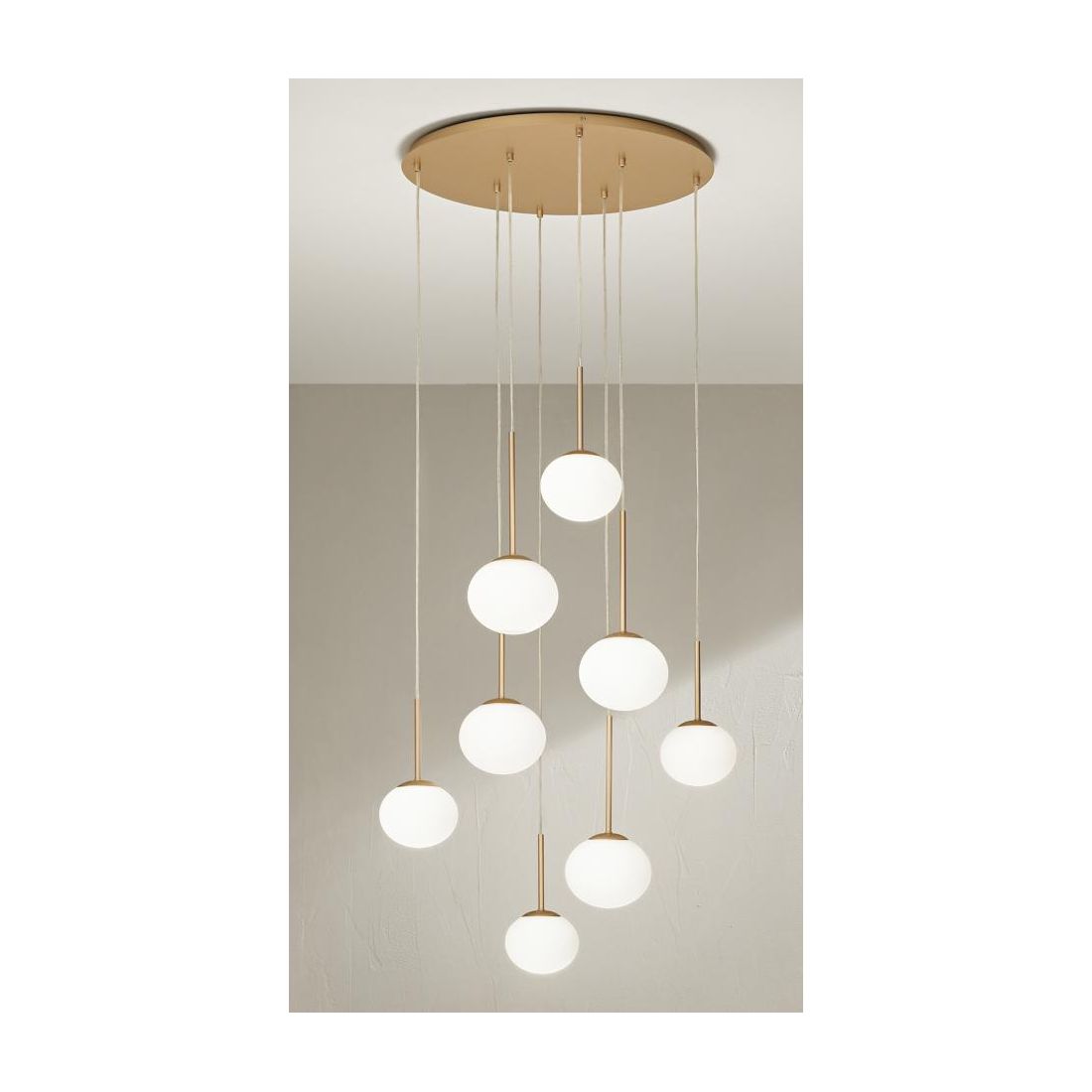 JEWEL SOSPENSIONE 6 LUCI NERA O ORO CON SFERE IN VETRO FUME O BIANCO MODERNA LAMPADINE...