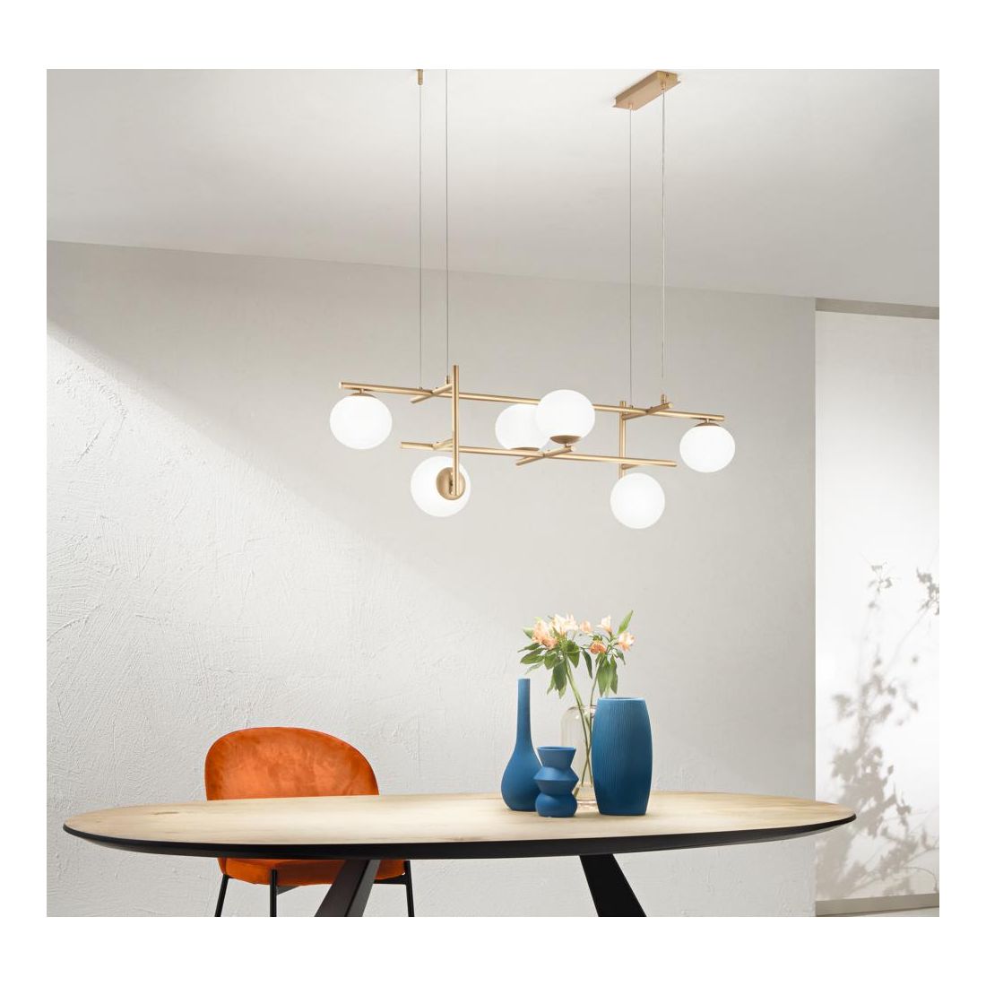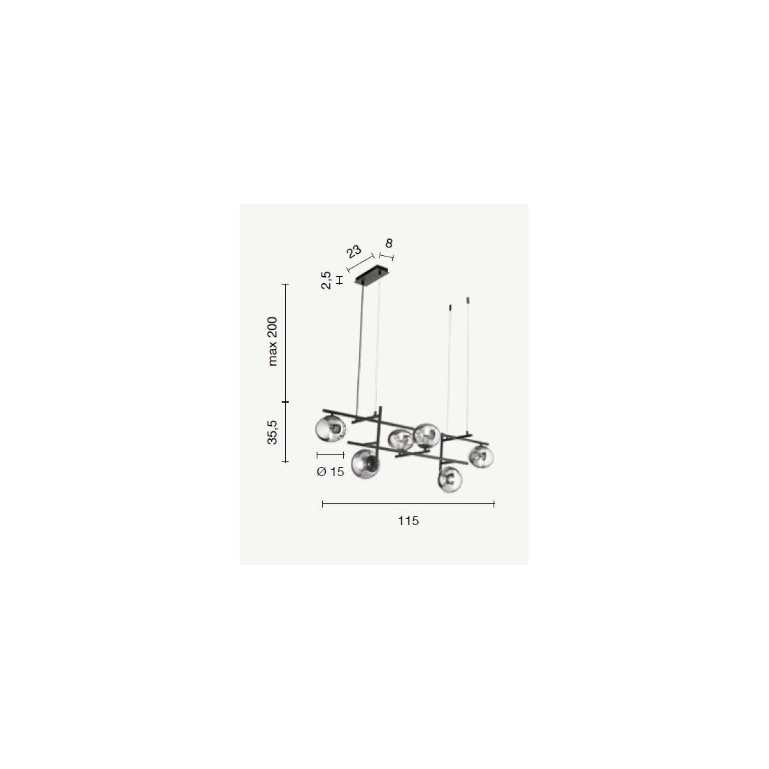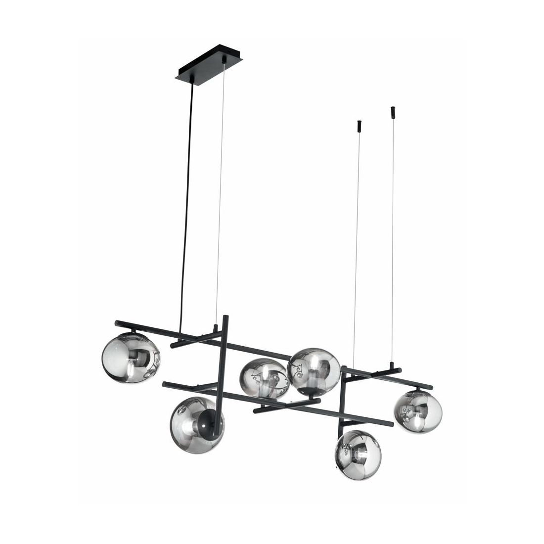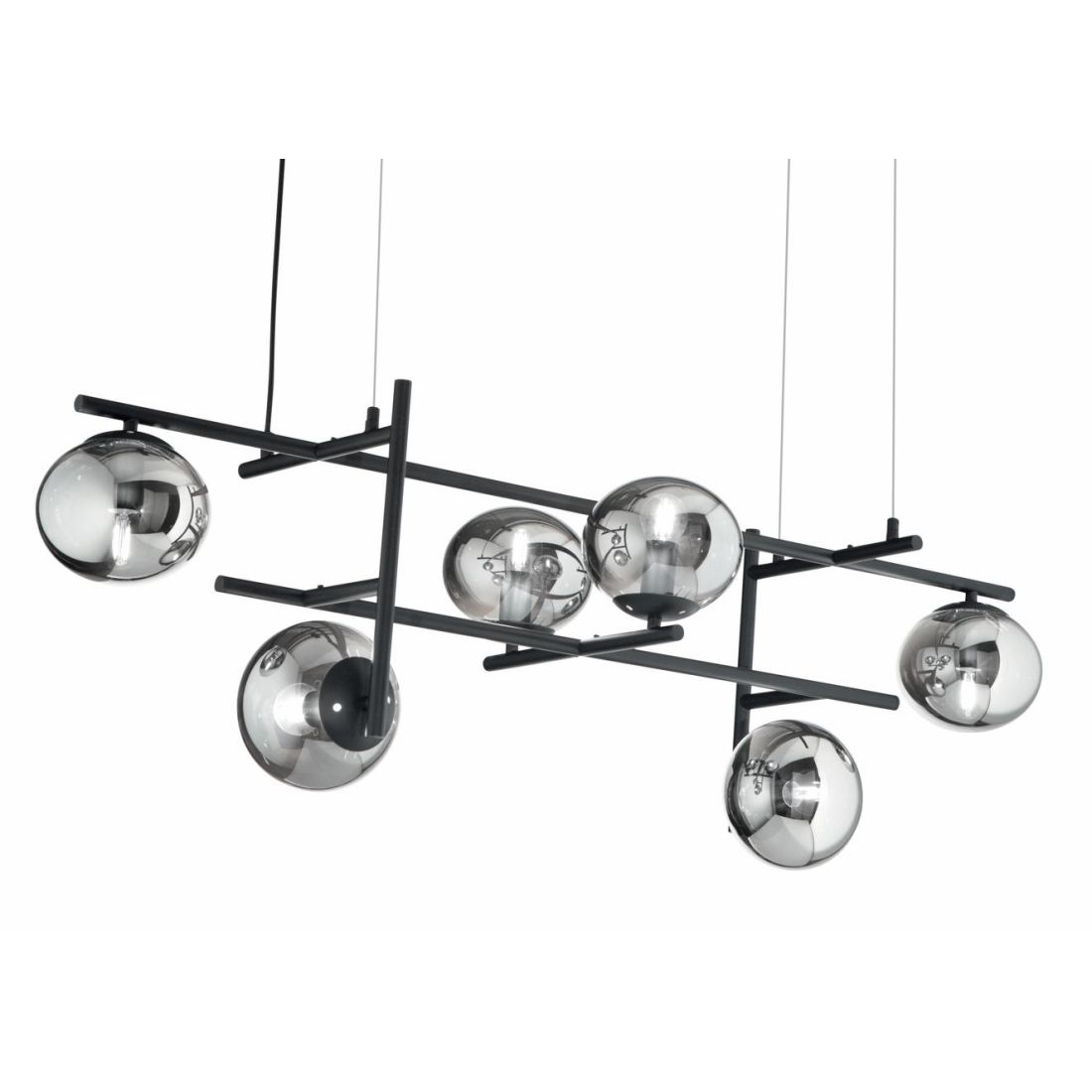 JEWEL SOSPENSIONE 6 LUCI NERA O ORO CON SFERE IN VETRO FUME O BIANCO MODERNA LAMPADINE...