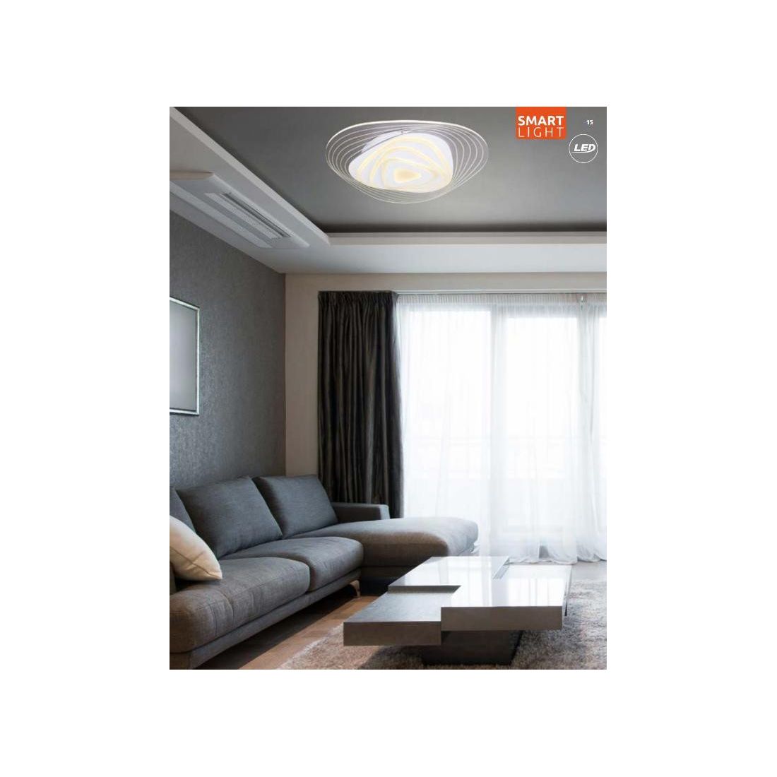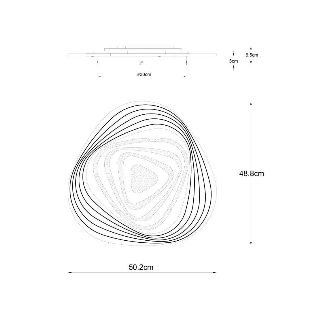 Questo oggetto luminoso ha una scheda LED da 40 watt con una durata di vita di 20.000 ore, una resa luminosa di 1750 lumen e la luce è dimmerabile e può essere regolato tramite il telecomando in dotazione da una luce bianca calda 3000K fino ad una luce fredda 6500k.