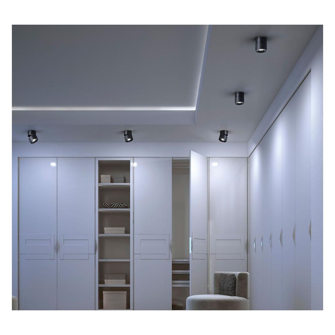 Dispone di una sorgente luminosa a Led da 11W capace di sprigionare un flusso luminoso di 1155 lumen. Grazie all'innovativo selettore CCT integrato, è possibile personalizzare l'atmosfera luminosa direttamente in fase di installazione scegliendo una luce calda 3000K, una luce bianca naturale 4000k oppure una luce fredda 6000k.