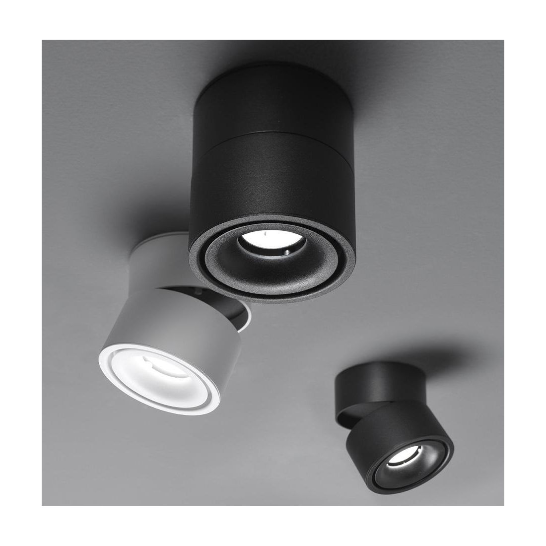 La lampada Joint è stata progettata per essere installata sia come plafoniera che come applique e si distingue per un corpo illuminante basculante, realizzato in metallo Bianco o Nero, che permette di modellare il fascio di luce secondo le specifiche esigenze architettoniche dello spazio.