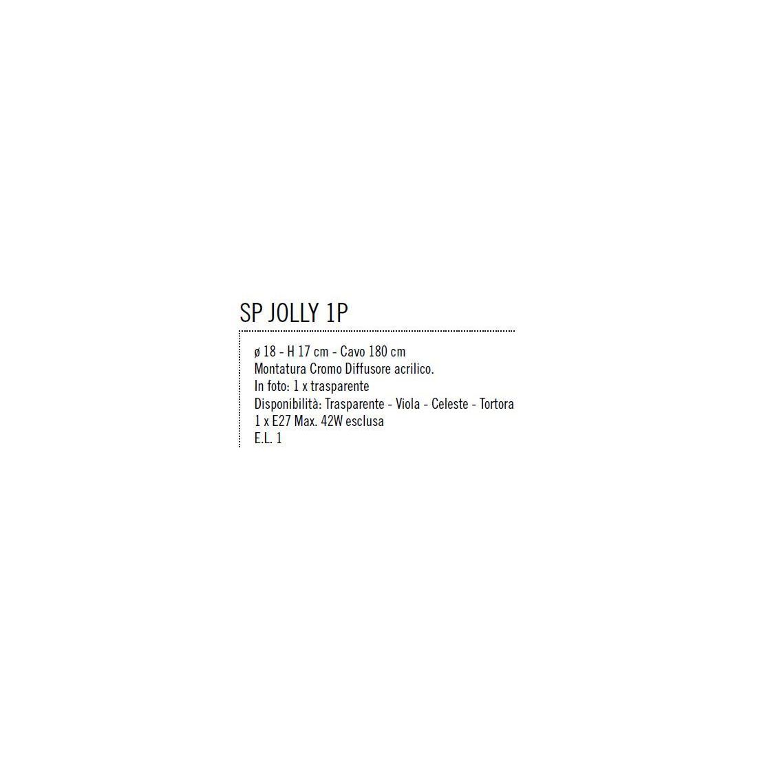 JOLLY SPG 1 SOSPENSIONE SINGOLA DIFFUSORE IN ACRILICO 7 COLORI ECONOMICA DI ILLUMINANDO