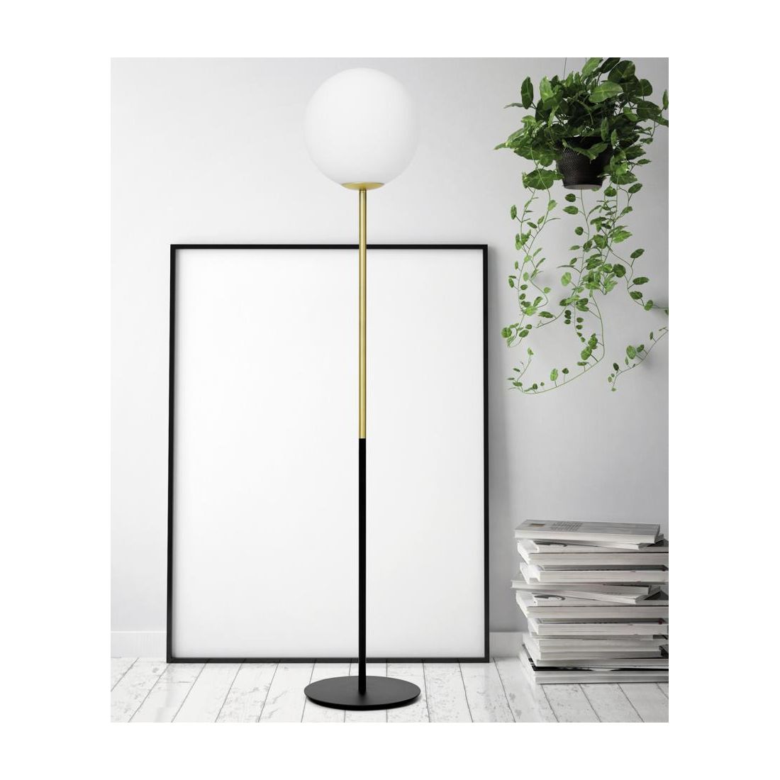 JUGEN PLAFONIERA METALLO ORO O NERA CON SFERA IN VETRO BIANCO LATTE MODERNA LAMPADINA E27