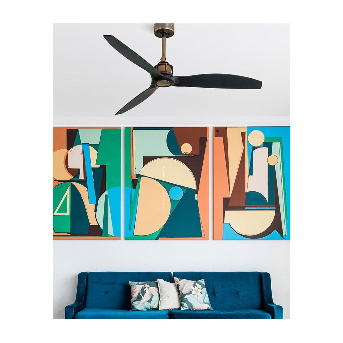 JUST FAN VENTILATORE A SOFFITTO OTTONE SPAZZOLATO CON 3 PALE NERE SENZA LUCE CON TELECOMANDO FARO VENTILATORI - Cristalensi Shop