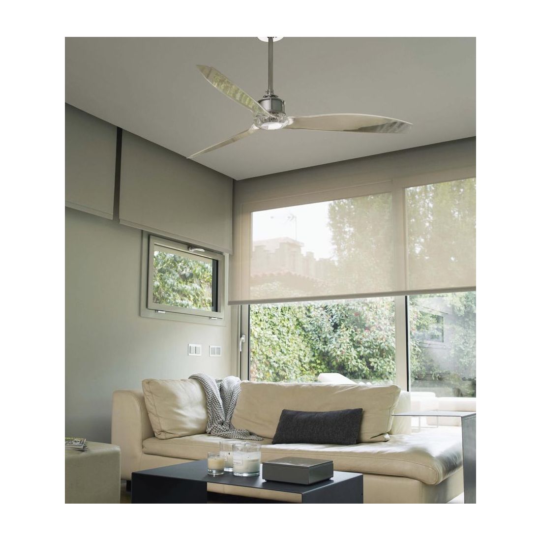 JUST FAN VENTILATORE A SOFFITTO RAME O OTTONE CON 3 PALE SENZA LUCE CON TELECOMANDO